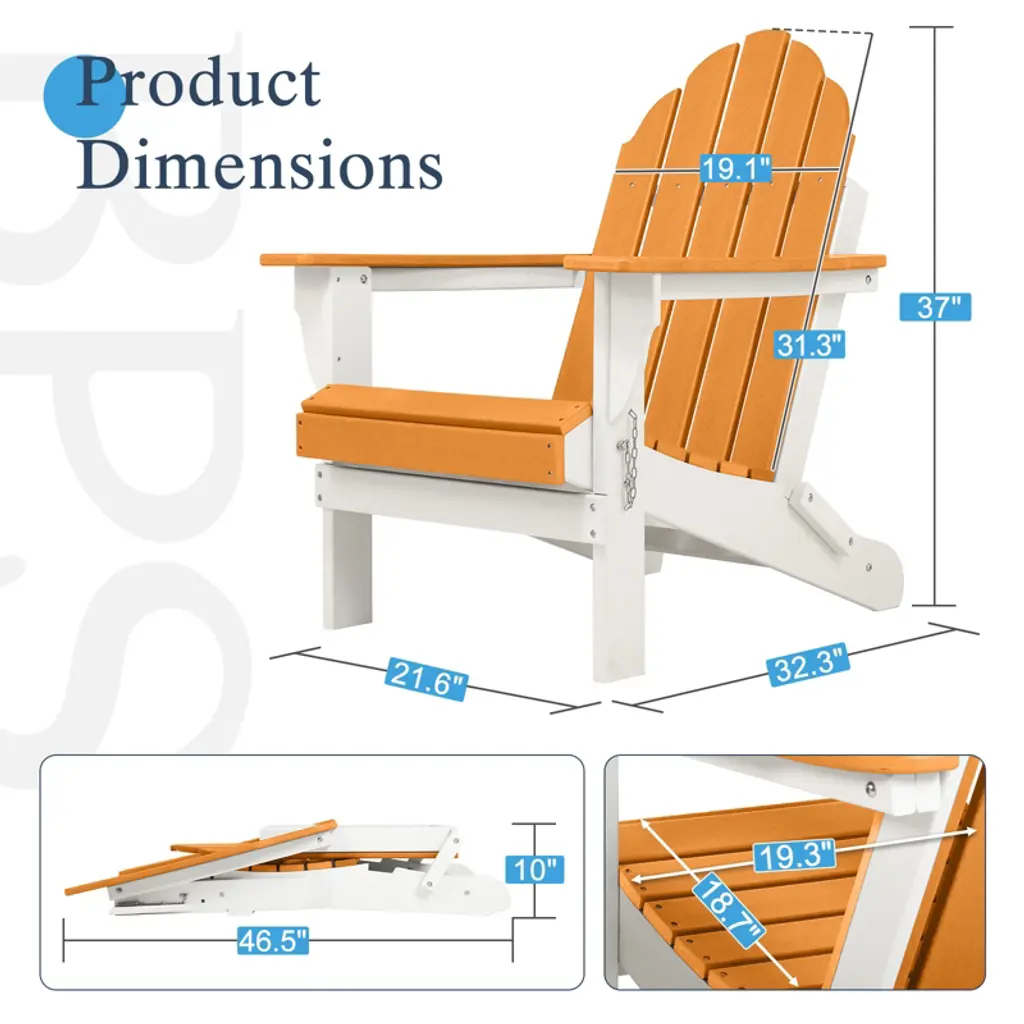 Aoodor Hdpe Outdoor All-weather Folding Adirondack Chair For Patio, Garden, Backyard, Deck Lawn Fire Pit 32'' (L) X 29'' (W) X 37'' (H)