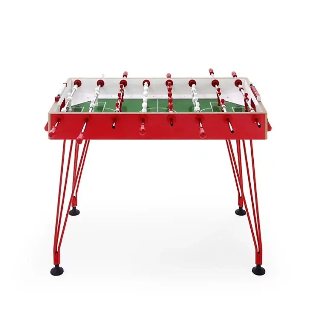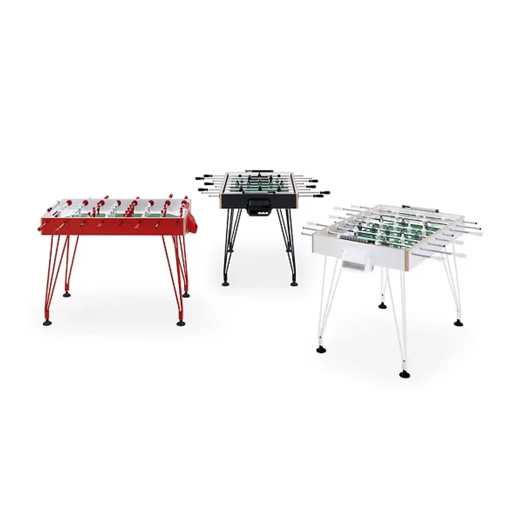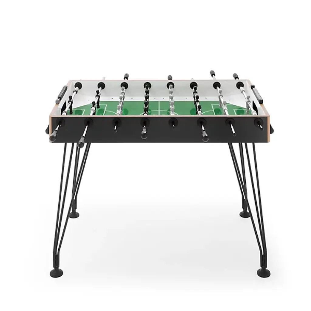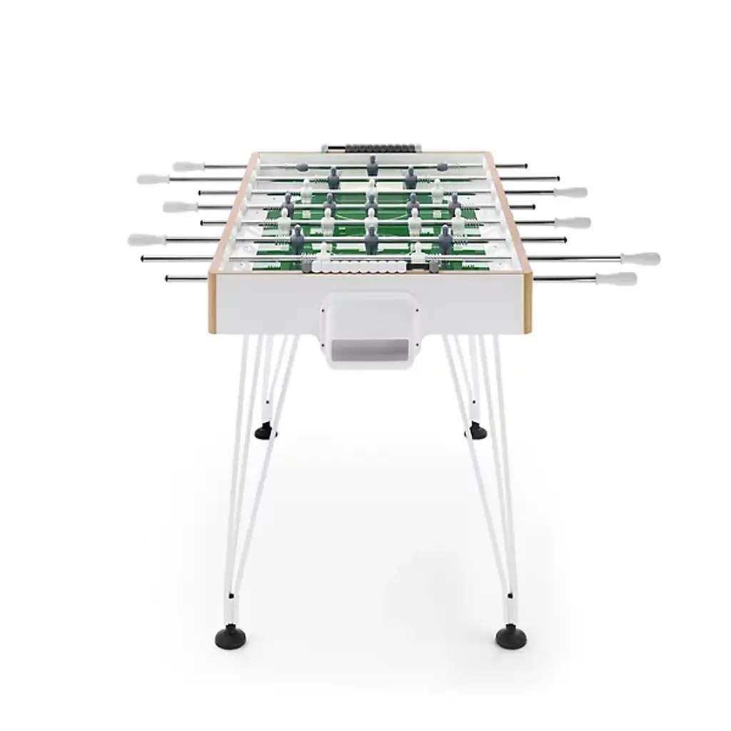The Apollo Outdoor Foosball from Fas Pendezza delivers out-of-this-world fun as a classic game and a charming design inspired by the first moon landing. The table is built to withstand its environment, like its namesake, with durable construction. It starts with a waterproof plywood playing field that rests atop evocative metallic rod legs. Slender metal rods shoot across the playing field, holding charming player figures and comfortable handles. The colorful playing field receives a tempered glass panel for durability. The table offers marks to keep score and a convenient goal container.