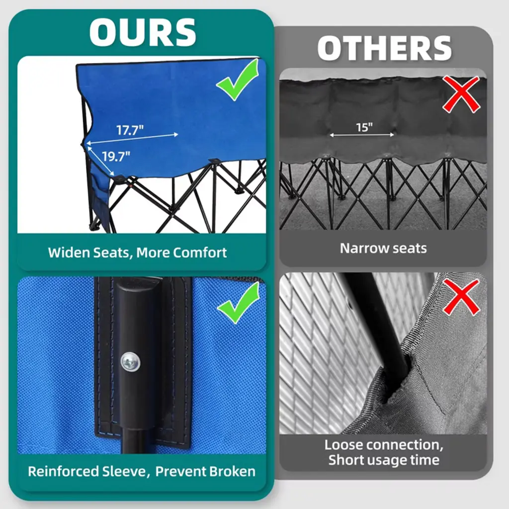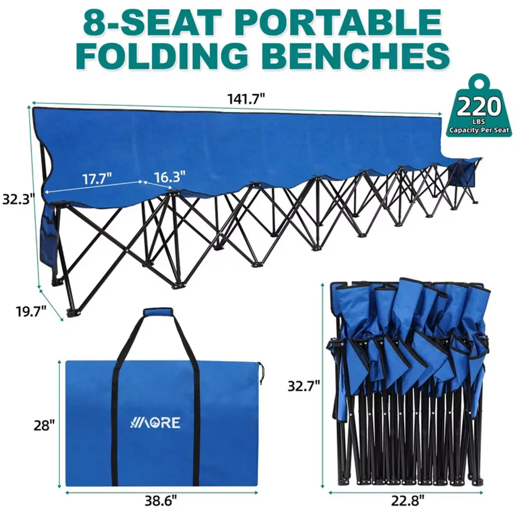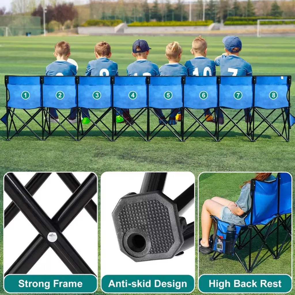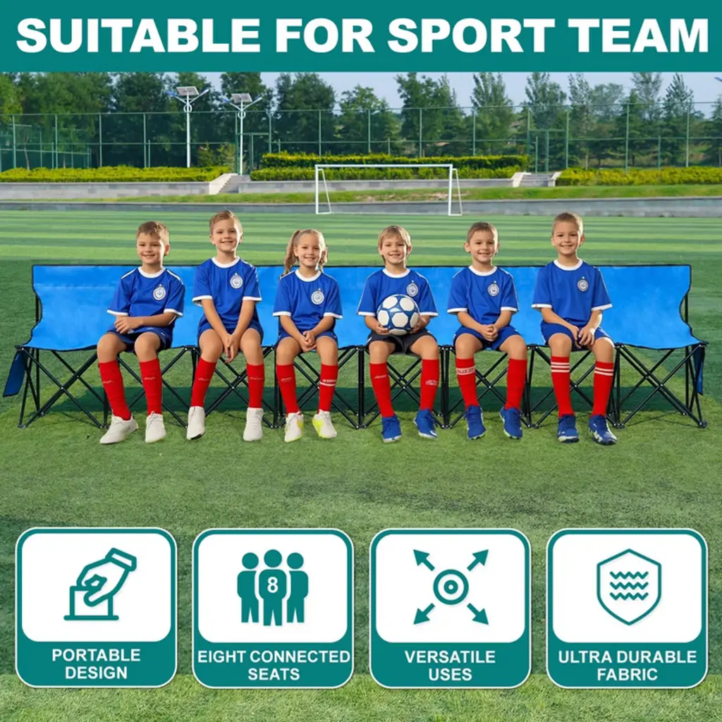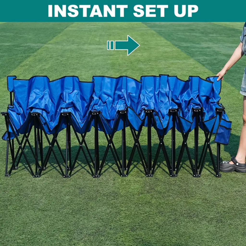 Crafted from alloy steel and double-layer 600D Oxford fabric, this team bench is ready to use in seconds. The extra-wide seat supports up to 220 lbs per seat and features a supportive backrest—no tools or assembly required, just unfold and sit. Each seat includes dedicated pockets for phones and water bottles, with additional storage at both ends for snacks or first-aid kits. When the final whistle blows, it folds into a compact bundle that easily fits in the trunk or stands upright for garage storage.