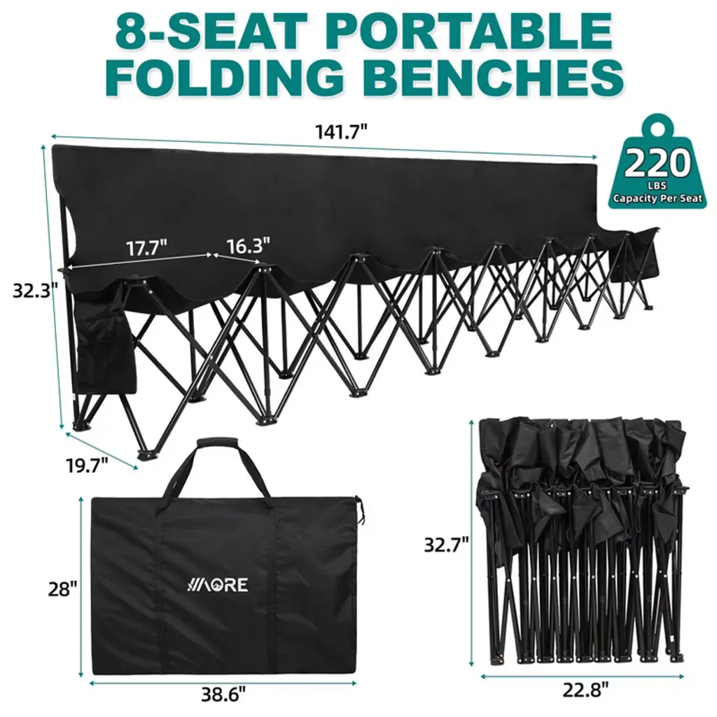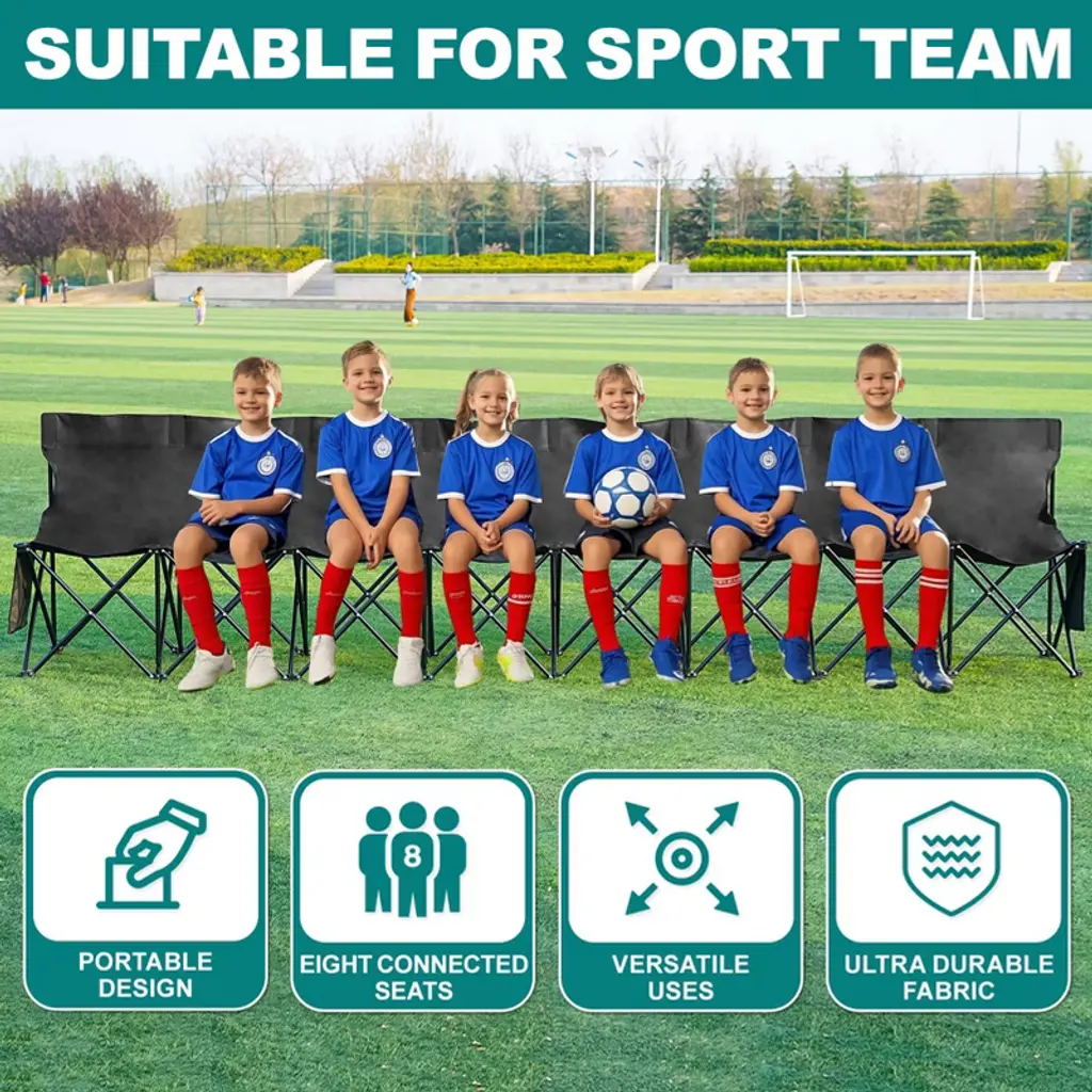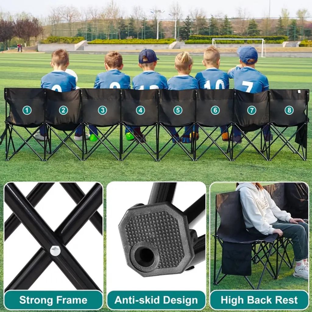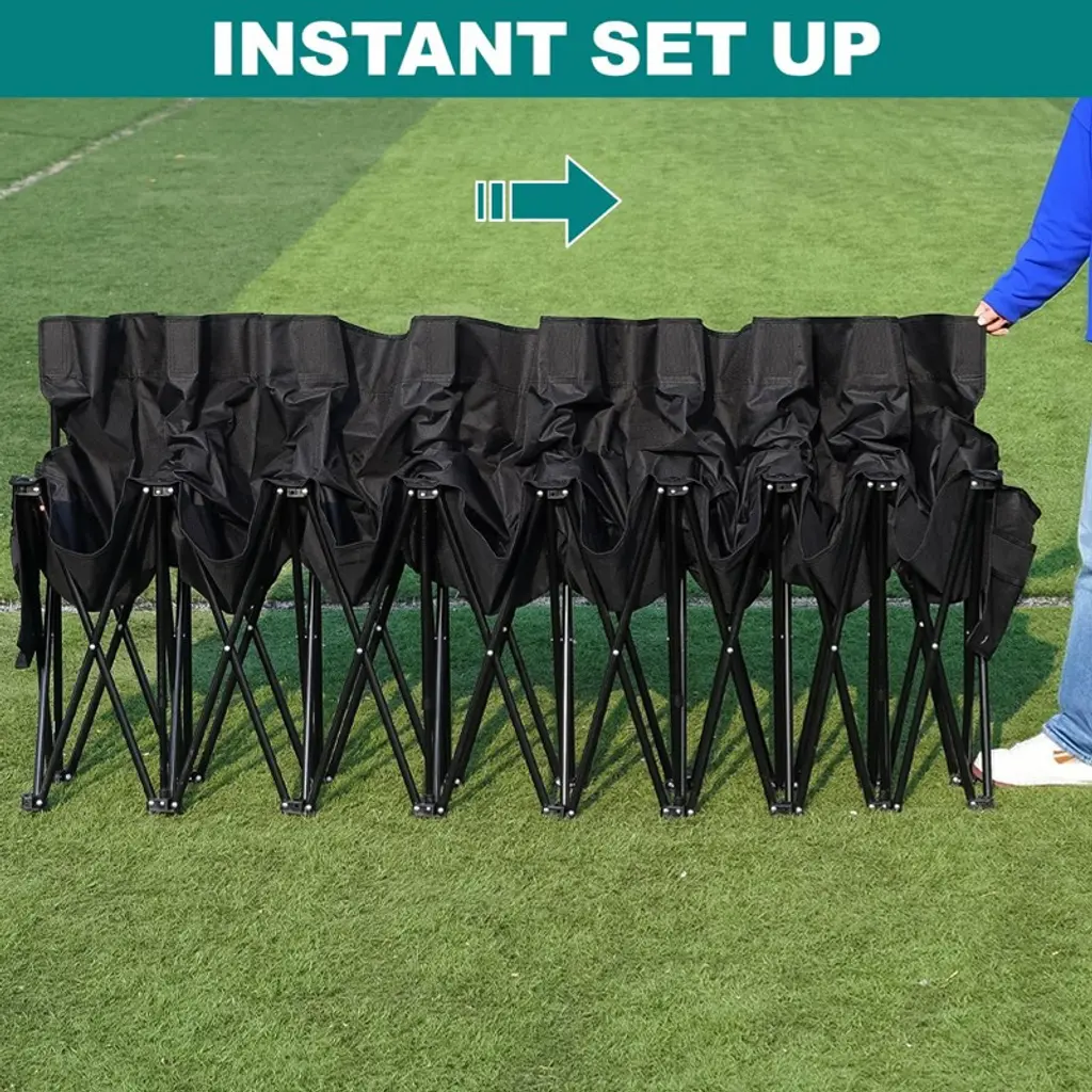 Aprilsoul Portable Folding Team Bench, 8 Seats Foldable Sideline Benches, Soccer Chair With Bag And Backrest, Adult Team Chair Black 2Pack