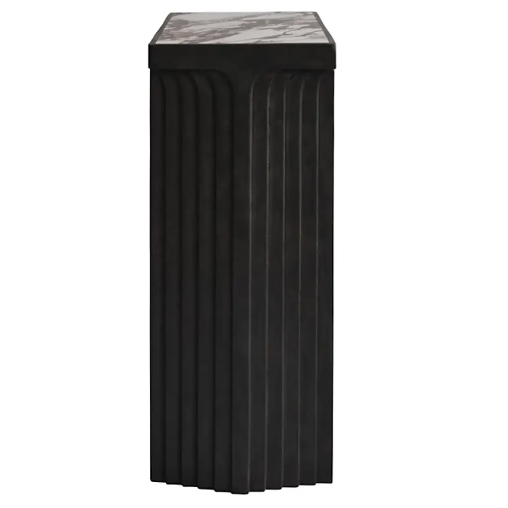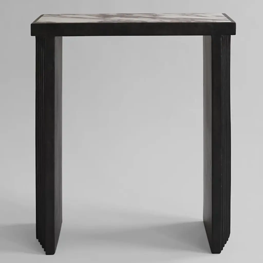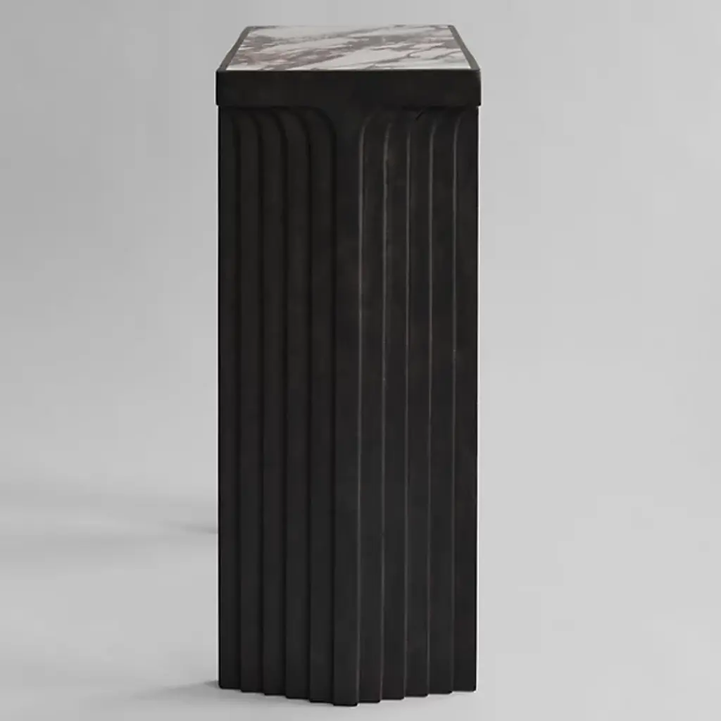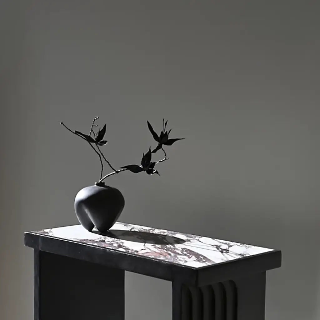 Inspired by the Art Deco era, the Arc Console Table from 101 Copenhagen reinterprets lavish architectural details into minimalist furniture designs. It showcases signature steps and arches, adding depth and a play of shadows to its form. Crafted with a fiber concrete base, the console is topped with exquisite marble, highlighting the natural stone's rich and intricate patterns. The polished marble surface gently reflects light, bringing warmth and elegance to any space.