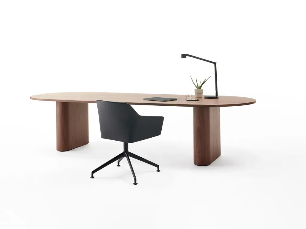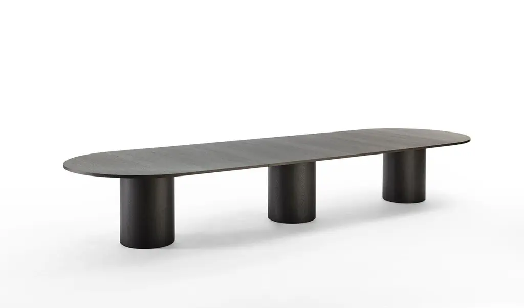 Kami is a wooden modular table that is designed to be configured with ease and according to your wishes, with endless length options in different shapes. From a small intimate setting to a great eye-catcher in a meeting and boardroom environment. The wooden design table is available in a round or oval shape for both the top and the column(s). The modern table brings together sustainable design and organic shapes into a timeless design for the living and working environment.The existing Kami collection is further expanded with a new slim column and various smaller sizes. The addition of the slimmer column gives more freedom for positioning chairs, due to more space between the columns. With the addition of smaller size, the Kami becomes even more versatile.The Kami collection has been developed in collaboration with Occony. We produce sustainableArco only works with FSC® and PEFC certified wood and carries the STIP quality mark. In addition, the wood can now also be finished with a durable water-based matt lacquer (N-lacquer).