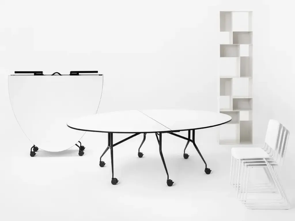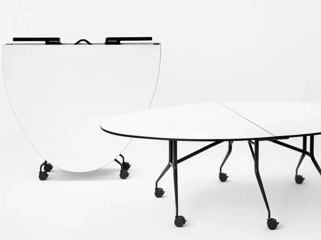 ARGO LIBRO T is a space saving table that can be fold in 40 cm that offers a wide and secure work surface. Designed to be equipped with round or elliptical tops, can be used during, meetings, workgroups, banquet and buffet, whilst giving the location an ample usage flexibility. The mechanical folding system makes this table easy to maneuver by one person alone. Once closed it can pass with ease through doors and elevators and can be placed in small storages as well. The table is equipped with the exclusive antishock system, designed and patented by Mara, which is able to keep the user’s hands safe when opening the table.