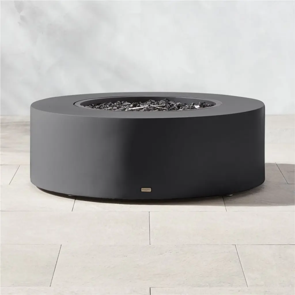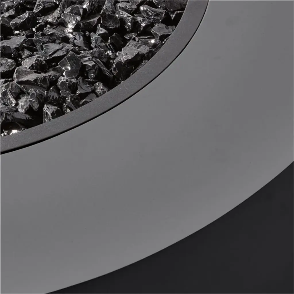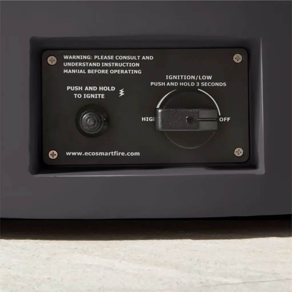 Graphite fire pit table by EcoSmart features a smokeless design that brings the ambience of a warm fireplace outdoors. With the fire as the centerpiece, the concrete rim offers space for drinks, making it perfect for outdoor entertaining. Crafted of a lightweight concrete composite, the weatherproof table resists scratches and stains, while the smooth graphite finish gives the piece a sleek, industrial look. Features adjustable articulating feet for stable positioning.