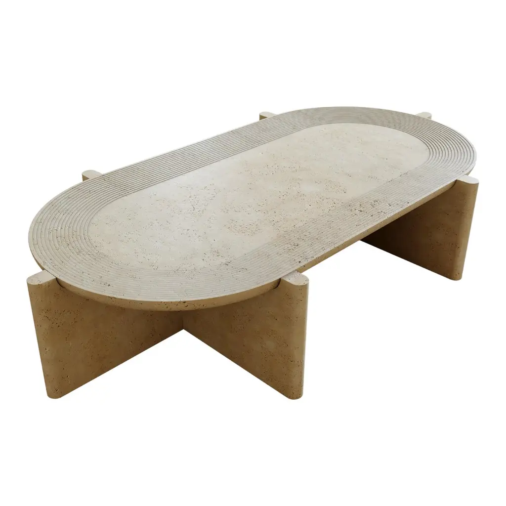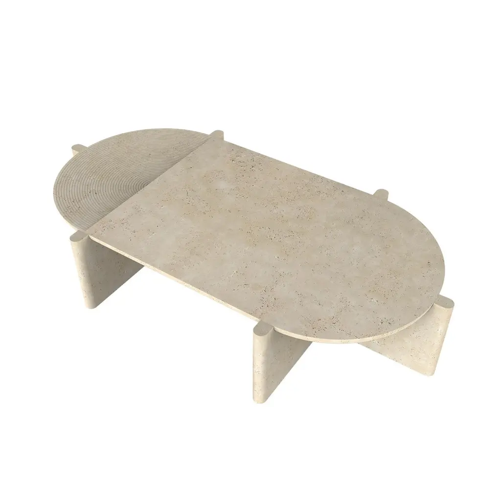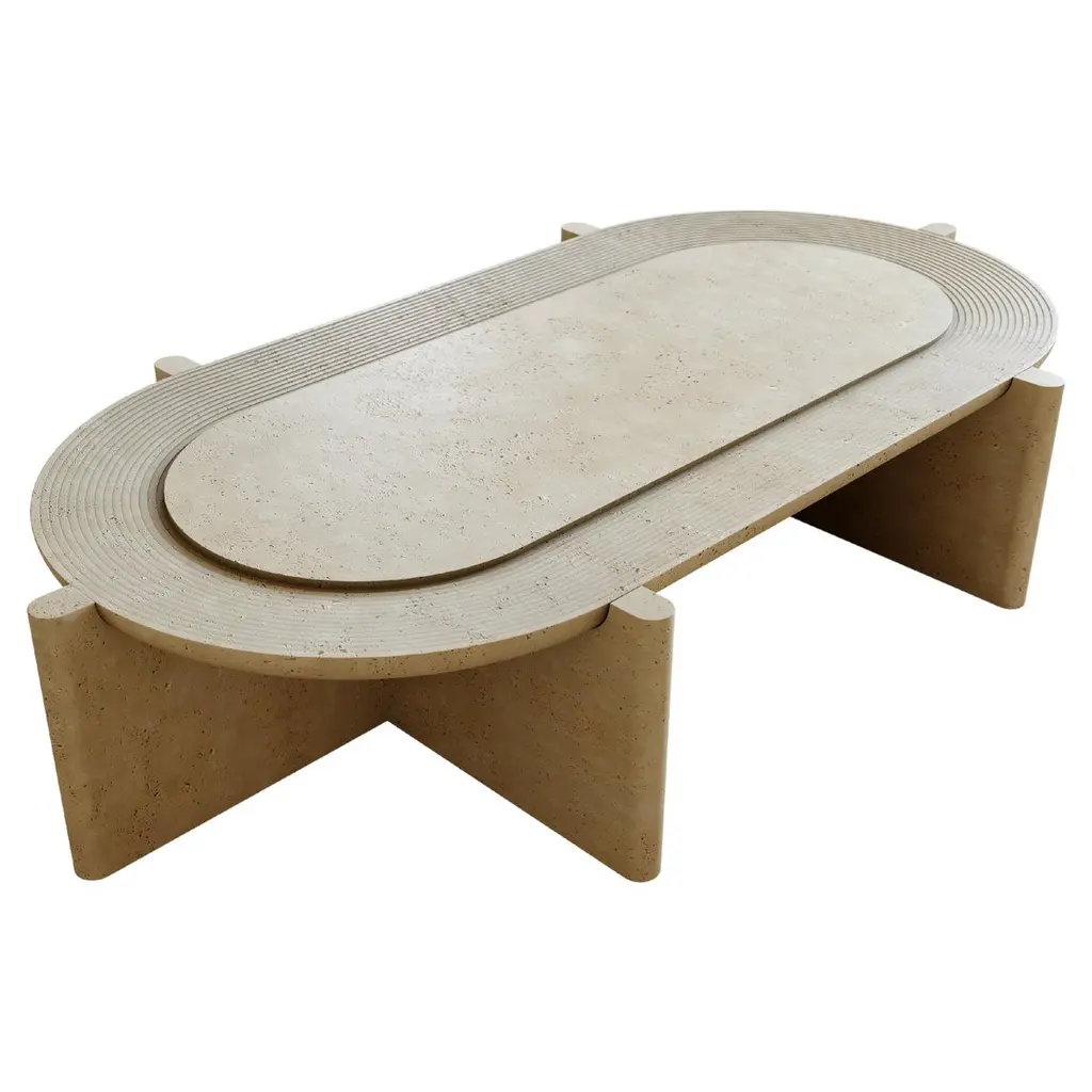 Arkhe No 1 Coffee Table Oval Travertine, Modern Sculptural By Fulden Topaloglu