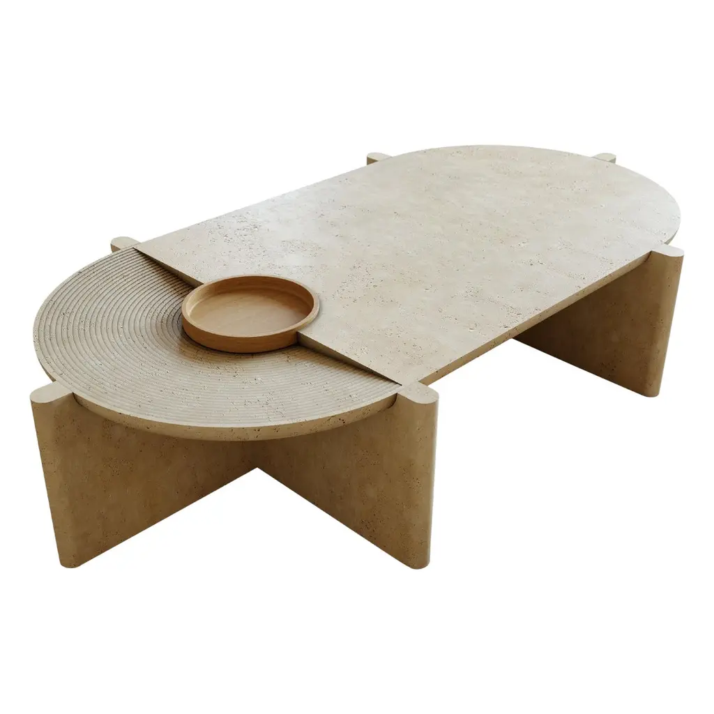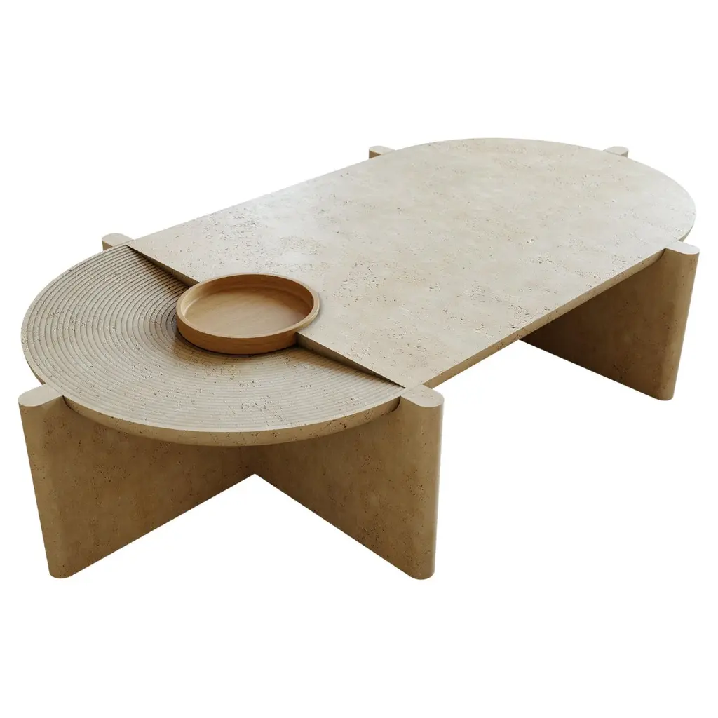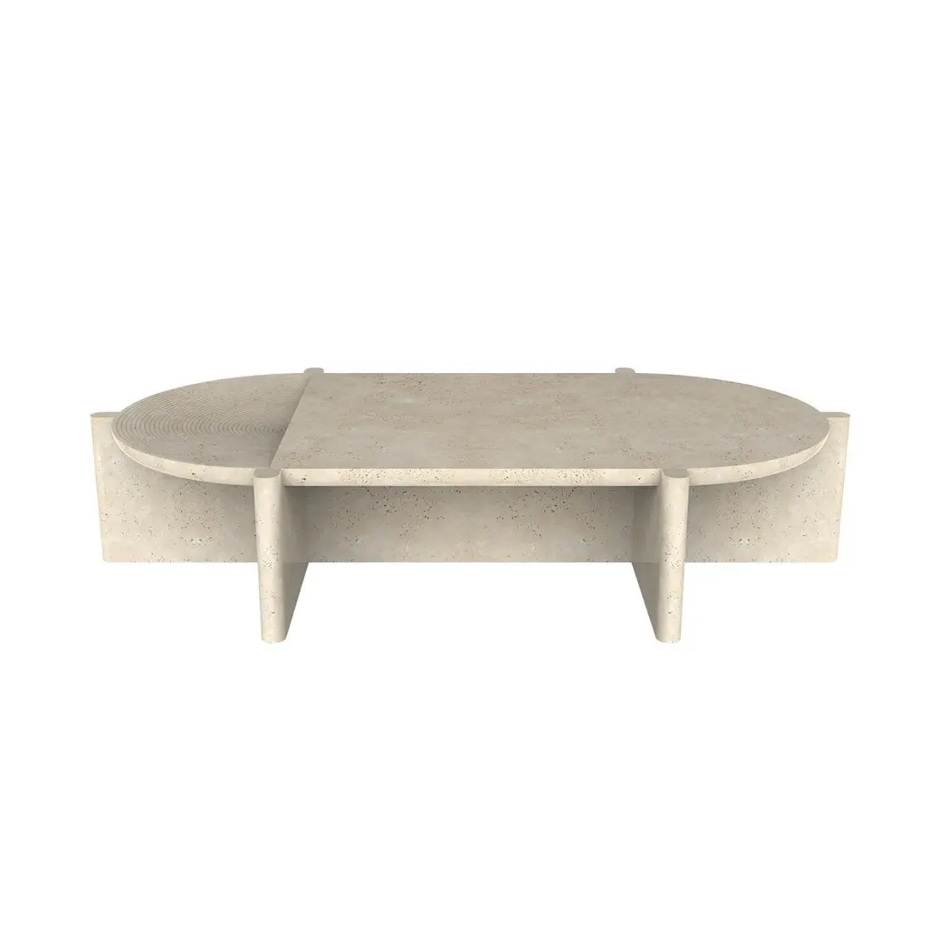 Arkhe No 1 Coffee Table Oval Travertine, Modern Sculptural By Fulden Topaloglu