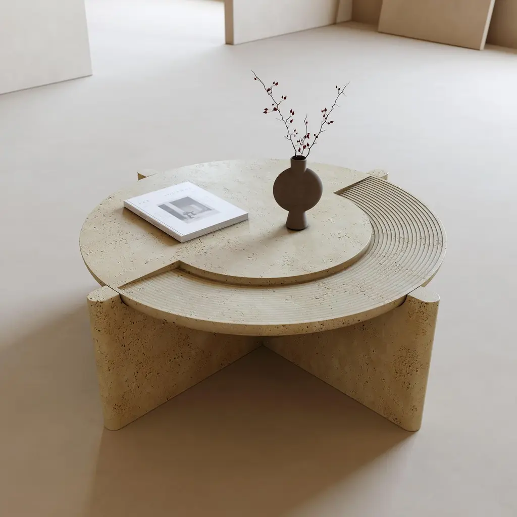 Arkhe No 3 Coffee Table Travertine, Modern Sculptural Round By Fulden Topaloglu