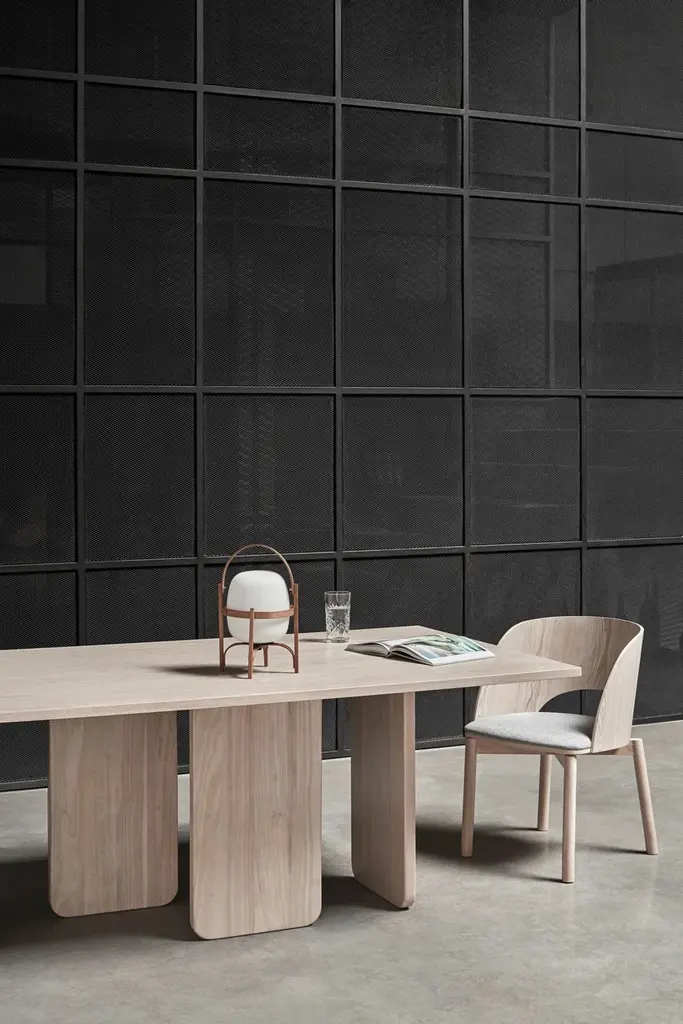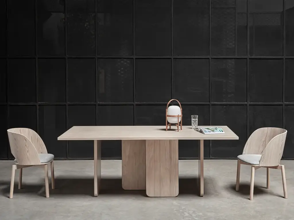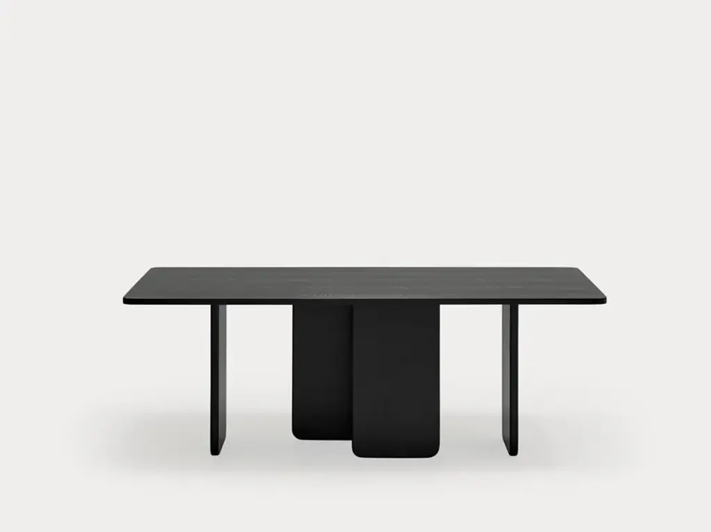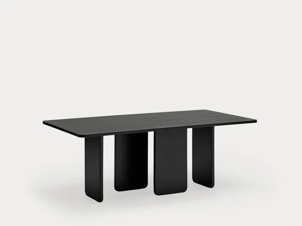 Arq is a table with solid wood base. The top is plated in natural ash or tinted in black.From an architecture perspective, Arq table has been conceived as if it were a work of art. The table consists of a series of vertical plane legs that support the table top. This design have been the inspiration of this furniture to provide a clean and defined lines.