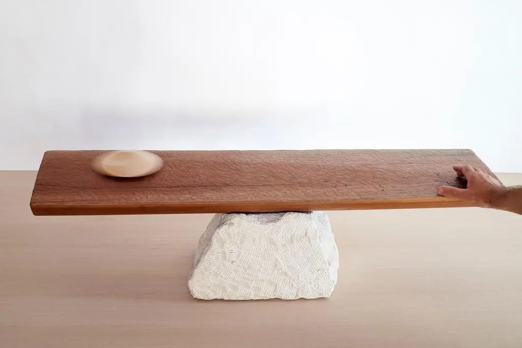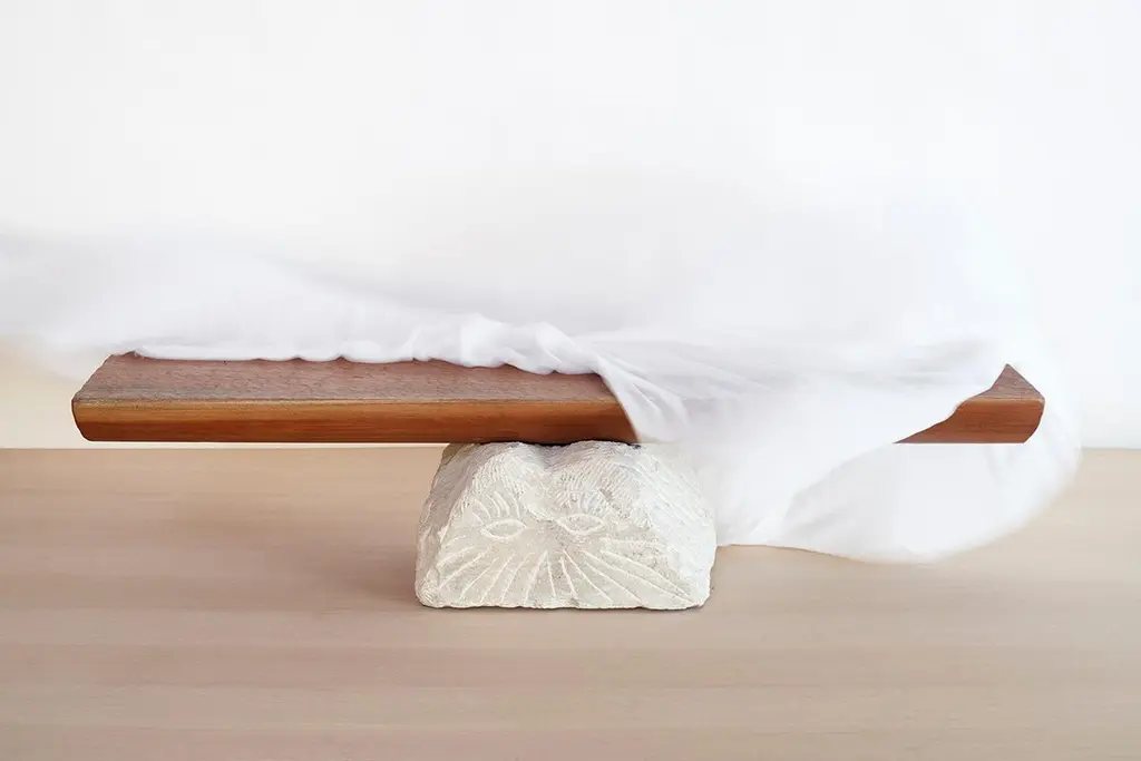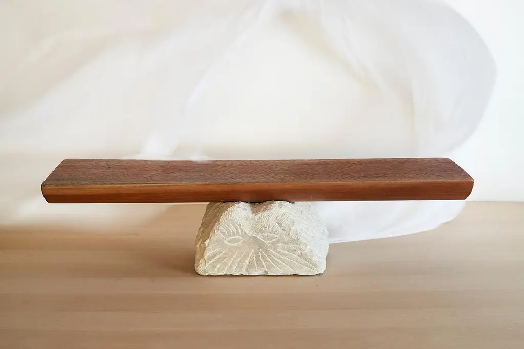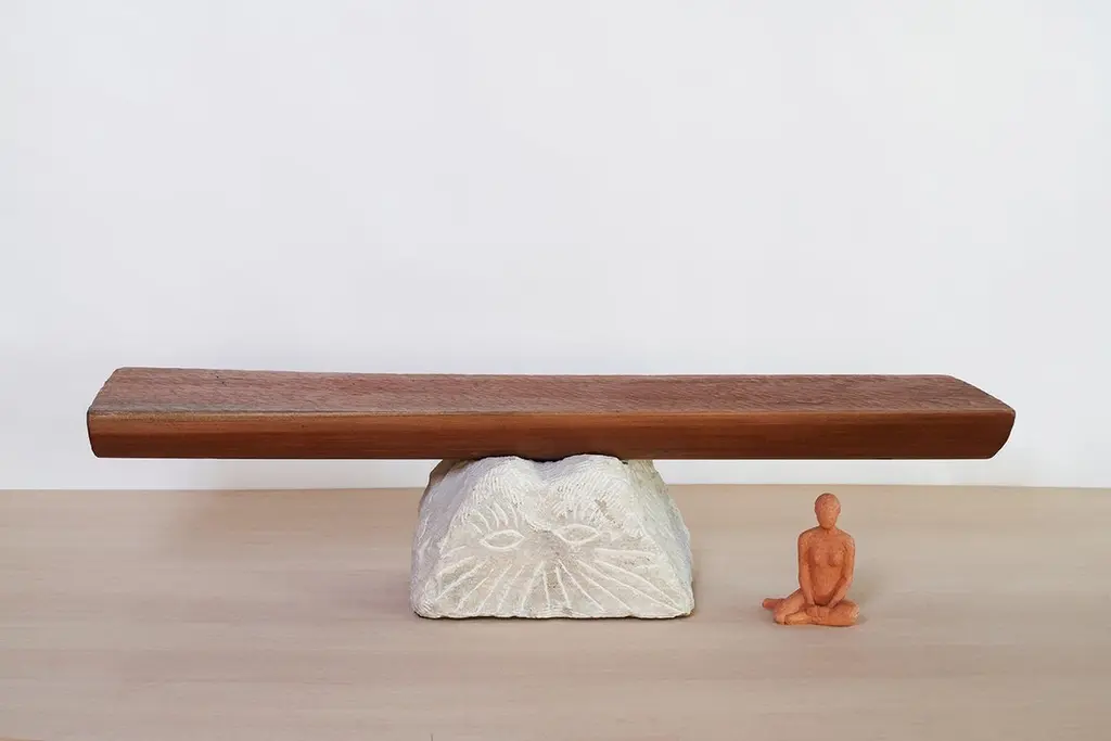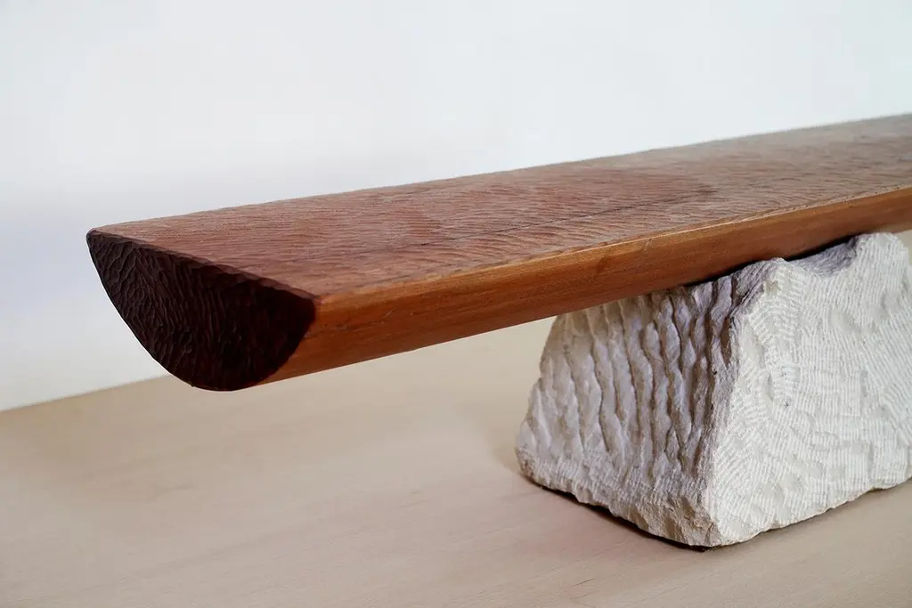Art Brut Low Table by Jean-Baptiste Van Den HeedeUnique pieceDimensions: L 35 x W 118 x H 35 cmMaterials: Stone, Wood.Low table or bench ART BRUT collection in stone and hand-carved wood. A piece that we can consider between art and design, can be seen as a sculpture. Jean-Baptiste Van den Heede defines himself as a cabinetmaker-designer and an artist of academic training and family tradition. He has achieved unique designs of national and international prestige and has several awards in avant-garde furniture.Born in Argentina in 1966, from an Argentine mother and a Belgian father. At 5 years of age he and his family moved to Belgium.To train as a wood professional, he first studied 4 years of carpentry. Then he continued training in cabinetmaking and carving for 5 more years. Always in search of contributing something more to his trade, he studied furniture and antique design, culminating this with the study of Sculpture at the Royal Academies of Fine Arts in Liège (Belgium) and graduating with honors.Work the stone, the wood and experience the forge. From the beginning it is directed towards a search for signs, abstract writings and unrealistic figures in analogy with other “primitive” cultures. He taught drawing and sculpture in Brussels at the private school “la main et l´ esprit” As well as summer courses in Liege (Belgium) “les ateliers d´art contemporain”.In 1995 he went to Barcelona where he taught and investigated the reliefs of different supports such as trees, floors, and especially sewer covers.He searched again analogies between current art and prehistoric, African art, etc.Participated in several exhibitions both at the artistic level and avant-garde design.In 2002, he moved down to Albacete and then to a town in the province where he still works.It is defined as “a search engine without haste or guidelines.” He says: “I only work when I feel a strong and positive inspiration invade me, an energy that I capture from matter, from the air and that I return doing the work until I feel a connection with it.”Private workshop of contemporary art in Letur (Albacete) until 2009.He currently works in his workshop-studio in the Sierra de Madrid (Guadalix de la Sierra) following his career as a cabinetmaker-designer and artist while teaching his trade to students interested in wood.