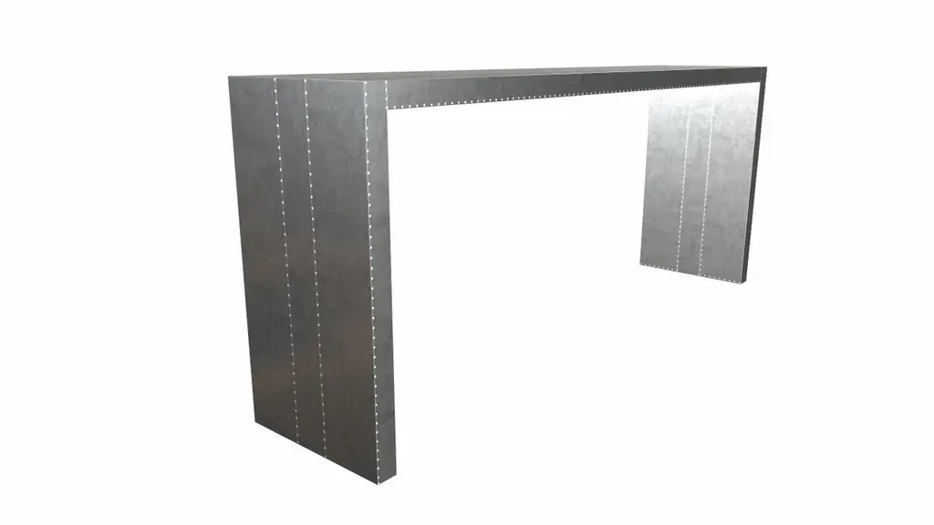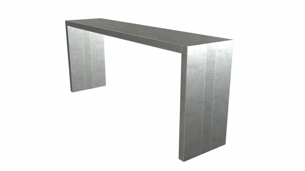 Alison Spear designed this elegant and minimal table for Stephanie Odegard during their trip together to Rajasthan, India. The craftsmen create patterns using different types of hammerings in the metal sheets clad over teak-wood structure.Crafted with utmost care and attention to detail, these Rectangular Console Tables are made to order and are available in twelve metal clad finishes, ensuring that you can choose the perfect one to match your individual style and taste. The use of high-quality materials and expert craftsmanship ensure that each Art Deco Rectangular Console Table is not only beautiful but also a true piece of art.The Straight legs and side arms of this Art Deco Rectangular Console Table are hand carved from solid pieces of teak. Pattern makers trace and cut complex forms that will cover the chair in a skin of copper, white bronze, brass or antiqued white bronze The metal finishes will tarnish over time. Regular non-abrasive household metal polishes can be used to restore the original luster.Overall, if you're looking for a piece of furniture that combines luxury, comfort, and style, then the Art Deco Rectangular Console Table is an excellent choice. With its distinctive curved profile and multiple finish options, this Chair set is sure to elevate the look of any room it is placed in, and be a beloved addition to your home for years to come.The images shown in this listing are shot in different lighting conditions and/or are 3D illustrations. We encourage our customers to please request a sample or a full sample set of 12 finishes so that they can experience the finish first hand. Art Deco Coffee and Cocktail Tables Rectangular Console in Smooth White Bronze by Alison SpearSize- 72"x 16"x 30"HMaterials - White Bronze, Metal sheet, Teak, Wood, MetalTechniques: Hand-Crafted, Hand-Carved, Metal Work, Wood Work, Metal Wrapping, PolishedPlease note that moisture in air, sudden change in temperature and natural movement of wood over time causes the metal to wrinkle or bubble up. We use well seasoned, reclaimed teak and high quality marine grade MDF (wherever technically possible) to avoid and delay the mentioned changes. However a perfect stability of metal cannot be guaranteed. Please note that our smooth finish metal clad pieces will have some unavoidable tool marks. This is proof that everything is done by hand. The smooth finish will not come out like a machine made perfect surface and the master artisan will do their best to make it look as good/clean/stable/perfect as he possibly can.The antique white bronze finish is hand done by using an acidic chemical over the white bronze finish to recreate a natural patination. Like with the natural patination of silver, copper, or brass, the final result and color uniformity of the patina cannot be guaranteed. The goal of this finish is to achieve rainbow-like shades with dull, shiny, cloudy, and streaky patches to give an illusion of antiquing. Please note:None of our metal clad pieces are treated with a protective “finish” thus enabling the items to age naturally over time. We will of course polish them well before we pack them. a) Copper oxidizes faster than the other metals. In six to twelve months it will most likely lose its shine and will gradually turn to different shades of brown and/or green/blue. This aging process and its effect is referred to as verdigris. After a year the piece should not change much more. Copper does not rust, but does require periodic cleaning in order to retain its original shine if that the preferred option. ('BRASSO' or any known copper polish can be used to polish copper).b) Brass retains its shine for far longer than others, but will tarnish if not cleaned on occasion. ('BRASSO' is made to polish brass).c) White bronze, has the least tendency to show age or tarnish. If kept in a controlled climate, this metal will hold its shine for years. It can be cleaned with a cleanser and polished with a cloth. d) The antiqued white bronze finish will react with the natural elements the fastest in the beginning but it too will stop reacting and will settle down in a stable state like copper after 6-12 months. Since it is already antiqued and looked like it is tarnished, as described in an earlier message, this fast reaction will not change the over all look. In that way this surface is most forgiving. The images shown in this listing are shot in different lighting conditions and/or are 3D illustrations. We encourage our customers to please request a sample or a full sample set of 12 finishes so that they can experience the finish first hand.