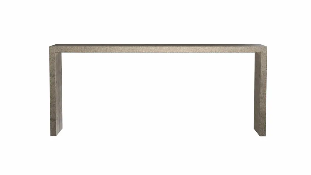 Alison Spear designed this elegant and minimal table for Stephanie Odegard during their trip together to Rajasthan, India. The craftsmen create patterns using different types of hammerings in the metal sheets clad over teak-wood structure.Crafted with utmost care and attention to detail, these Rectangular Console Tables are made to order and are available in twelve metal clad finishes, ensuring that you can choose the perfect one to match your individual style and taste. The use of high-quality materials and expert craftsmanship ensure that each Art Deco Rectangular Console Table is not only beautiful but also a true piece of art.The Straight legs and side arms of this Art Deco Rectangular Console Table are hand carved from solid pieces of teak. Pattern makers trace and cut complex forms that will cover the chair in a skin of copper, white bronze, brass or antiqued white bronze The metal finishes will tarnish over time. Regular non-abrasive household metal polishes can be used to restore the original luster.Overall, if you're looking for a piece of furniture that combines luxury, comfort, and style, then the Art Deco Rectangular Console Table is an excellent choice. With its distinctive curved profile and multiple finish options, this Chair set is sure to elevate the look of any room it is placed in, and be a beloved addition to your home for years to come.The images shown in this listing are shot in different lighting conditions and/or are 3D illustrations. We encourage our customers to please request a sample or a full sample set of 12 finishes so that they can experience the finish first hand. Art deco Game Console Tables Antique Bronze Fine Hammered by Alison SpearSize- 72"x 16"x 30"HMaterials - Antique Bronze, Metal sheet, Teak, Wood, MetalTechniques: Hand-Crafted, Hand-Carved, Metal Work, Wood Work, Metal Wrapping, PolishedPlease note that moisture in air, sudden change in temperature and natural movement of wood over time causes the metal to wrinkle or bubble up. We use well seasoned, reclaimed teak and high quality marine grade MDF (wherever technically possible) to avoid and delay the mentioned changes. However a perfect stability of metal cannot be guaranteed. Please note that our smooth finish metal clad pieces will have some unavoidable tool marks. This is proof that everything is done by hand. The smooth finish will not come out like a machine made perfect surface and the master artisan will do their best to make it look as good/clean/stable/perfect as he possibly can.The antique white bronze finish is hand done by using an acidic chemical over the white bronze finish to recreate a natural patination. Like with the natural patination of silver, copper, or brass, the final result and color uniformity of the patina cannot be guaranteed. The goal of this finish is to achieve rainbow-like shades with dull, shiny, cloudy, and streaky patches to give an illusion of antiquing. Please note:None of our metal clad pieces are treated with a protective “finish” thus enabling the items to age naturally over time. We will of course polish them well before we pack them. a) Copper oxidizes faster than the other metals. In six to twelve months it will most likely lose its shine and will gradually turn to different shades of brown and/or green/blue. This aging process and its effect is referred to as verdigris. After a year the piece should not change much more. Copper does not rust, but does require periodic cleaning in order to retain its original shine if that the preferred option. ('BRASSO' or any known copper polish can be used to polish copper).b) Brass retains its shine for far longer than others, but will tarnish if not cleaned on occasion. ('BRASSO' is made to polish brass).c) White bronze, has the least tendency to show age or tarnish. If kept in a controlled climate, this metal will hold its shine for years. It can be cleaned with a cleanser and polished with a cloth. d) The antiqued white bronze finish will react with the natural elements the fastest in the beginning but it too will stop reacting and will settle down in a stable state like copper after 6-12 months. Since it is already antiqued and looked like it is tarnished, as described in an earlier message, this fast reaction will not change the over all look. In that way this surface is most forgiving. The images shown in this listing are shot in different lighting conditions and/or are 3D illustrations. We encourage our customers to please request a sample or a full sample set of 12 finishes so that they can experience the finish first hand.
