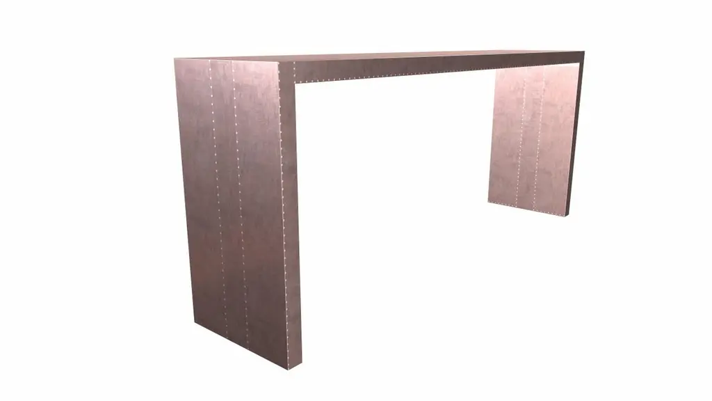 Alison Spear designed this elegant and minimal table for Stephanie Odegard during their trip together to Rajasthan, India. The craftsmen create patterns using different types of hammerings in the metal sheets clad over teak-wood structure.Crafted with utmost care and attention to detail, these Rectangular Console Tables are made to order and are available in twelve metal clad finishes, ensuring that you can choose the perfect one to match your individual style and taste. The use of high-quality materials and expert craftsmanship ensure that each Art Deco Rectangular Console Table is not only beautiful but also a true piece of art.The Straight legs and side arms of this Art Deco Rectangular Console Table are hand carved from solid pieces of teak. Pattern makers trace and cut complex forms that will cover the chair in a skin of copper, white bronze, brass or antiqued white bronze The metal finishes will tarnish over time. Regular non-abrasive household metal polishes can be used to restore the original luster.Overall, if you're looking for a piece of furniture that combines luxury, comfort, and style, then the Art Deco Rectangular Console Table is an excellent choice. With its distinctive curved profile and multiple finish options, this Chair set is sure to elevate the look of any room it is placed in, and be a beloved addition to your home for years to come.The images shown in this listing are shot in different lighting conditions and/or are 3D illustrations. We encourage our customers to please request a sample or a full sample set of 12 finishes so that they can experience the finish first hand. Art Deco Rectangular Console Tables Fine Hammered Copper by Alison SpearSize- 72"x 16"x 30"HMaterials - Copper, Metal sheet, Teak, Wood, MetalTechniques: Hand-Crafted, Hand-Carved, Metal Work, Wood Work, Metal Wrapping, PolishedPlease note that moisture in air, sudden change in temperature and natural movement of wood over time causes the metal to wrinkle or bubble up. We use well seasoned, reclaimed teak and high quality marine grade MDF (wherever technically possible) to avoid and delay the mentioned changes. However a perfect stability of metal cannot be guaranteed. Please note that our smooth finish metal clad pieces will have some unavoidable tool marks. This is proof that everything is done by hand. The smooth finish will not come out like a machine made perfect surface and the master artisan will do their best to make it look as good/clean/stable/perfect as he possibly can.The antique white bronze finish is hand done by using an acidic chemical over the white bronze finish to recreate a natural patination. Like with the natural patination of silver, copper, or brass, the final result and color uniformity of the patina cannot be guaranteed. The goal of this finish is to achieve rainbow-like shades with dull, shiny, cloudy, and streaky patches to give an illusion of antiquing. Please note:None of our metal clad pieces are treated with a protective “finish” thus enabling the items to age naturally over time. We will of course polish them well before we pack them. a) Copper oxidizes faster than the other metals. In six to twelve months it will most likely lose its shine and will gradually turn to different shades of brown and/or green/blue. This aging process and its effect is referred to as verdigris. After a year the piece should not change much more. Copper does not rust, but does require periodic cleaning in order to retain its original shine if that the preferred option. ('BRASSO' or any known copper polish can be used to polish copper).b) Brass retains its shine for far longer than others, but will tarnish if not cleaned on occasion. ('BRASSO' is made to polish brass).c) White bronze, has the least tendency to show age or tarnish. If kept in a controlled climate, this metal will hold its shine for years. It can be cleaned with a cleanser and polished with a cloth. d) The antiqued white bronze finish will react with the natural elements the fastest in the beginning but it too will stop reacting and will settle down in a stable state like copper after 6-12 months. Since it is already antiqued and looked like it is tarnished, as described in an earlier message, this fast reaction will not change the over all look. In that way this surface is most forgiving. The images shown in this listing are shot in different lighting conditions and/or are 3D illustrations. We encourage our customers to please request a sample or a full sample set of 12 finishes so that they can experience the finish first hand.