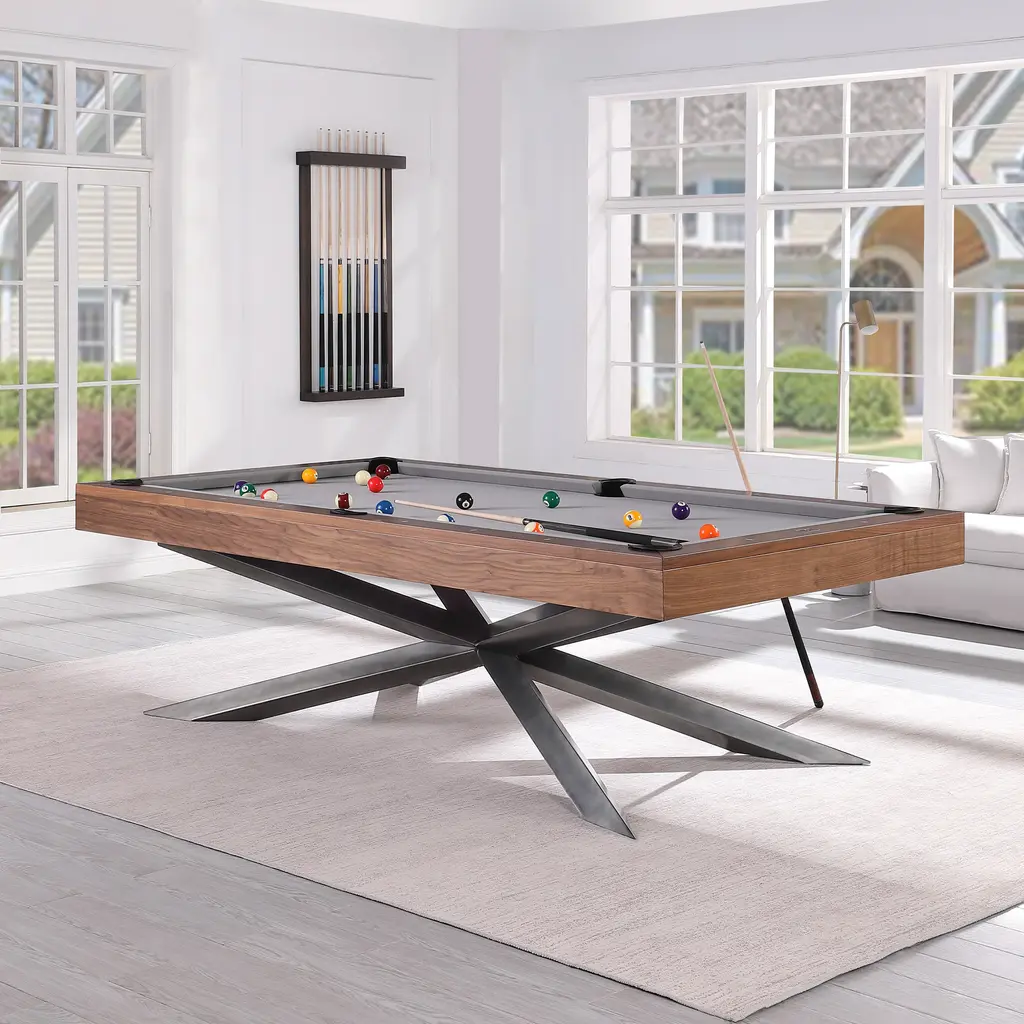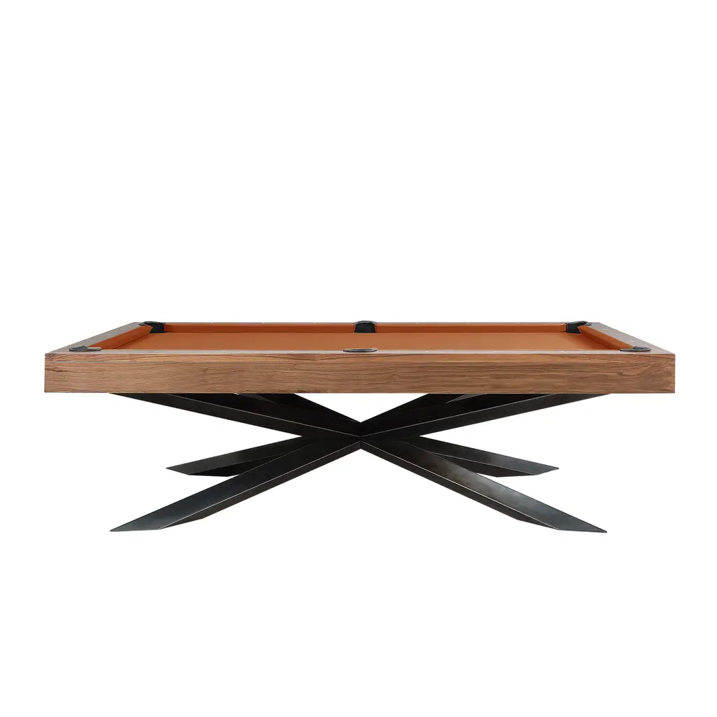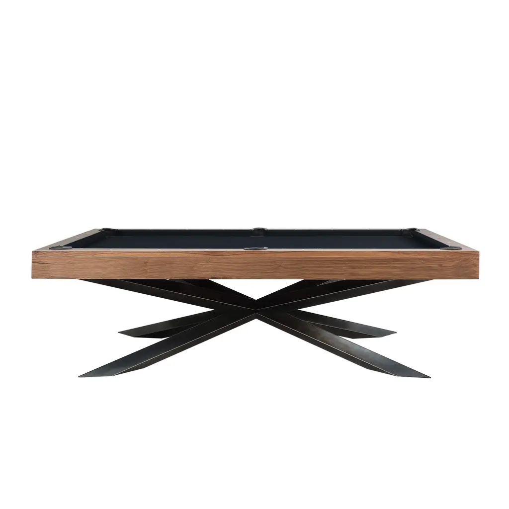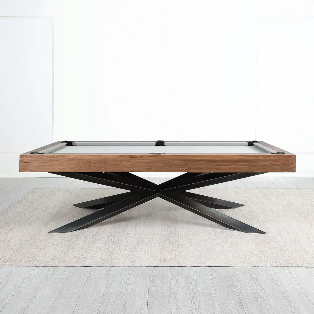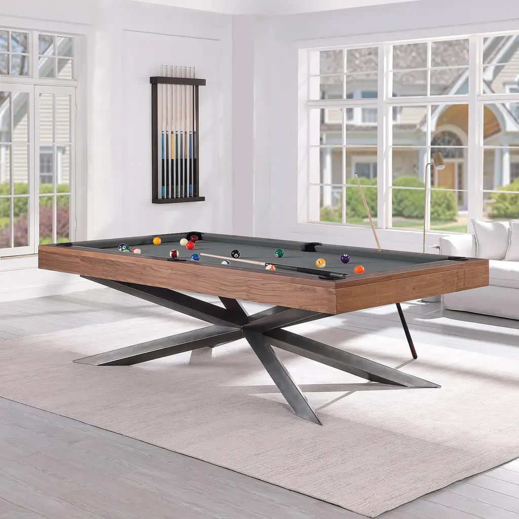 Elevate your game play with the Astral Slate Pool Table from Playcraft. Combining premium solid hardwood with expertly crafted metal details, this pool table is finished in a natural walnut stain that reveals the wood’s rich, distinctive character. Its bold star-pattern leg design creates a striking focal point, while inlaid sights and premium K66 gum rubber cushions ensure consistent, precise play. Built with quality materials and meticulous construction, this table offers enduring elegance and exceptional billiards performance for years of enjoyment with family and friends. Highlights