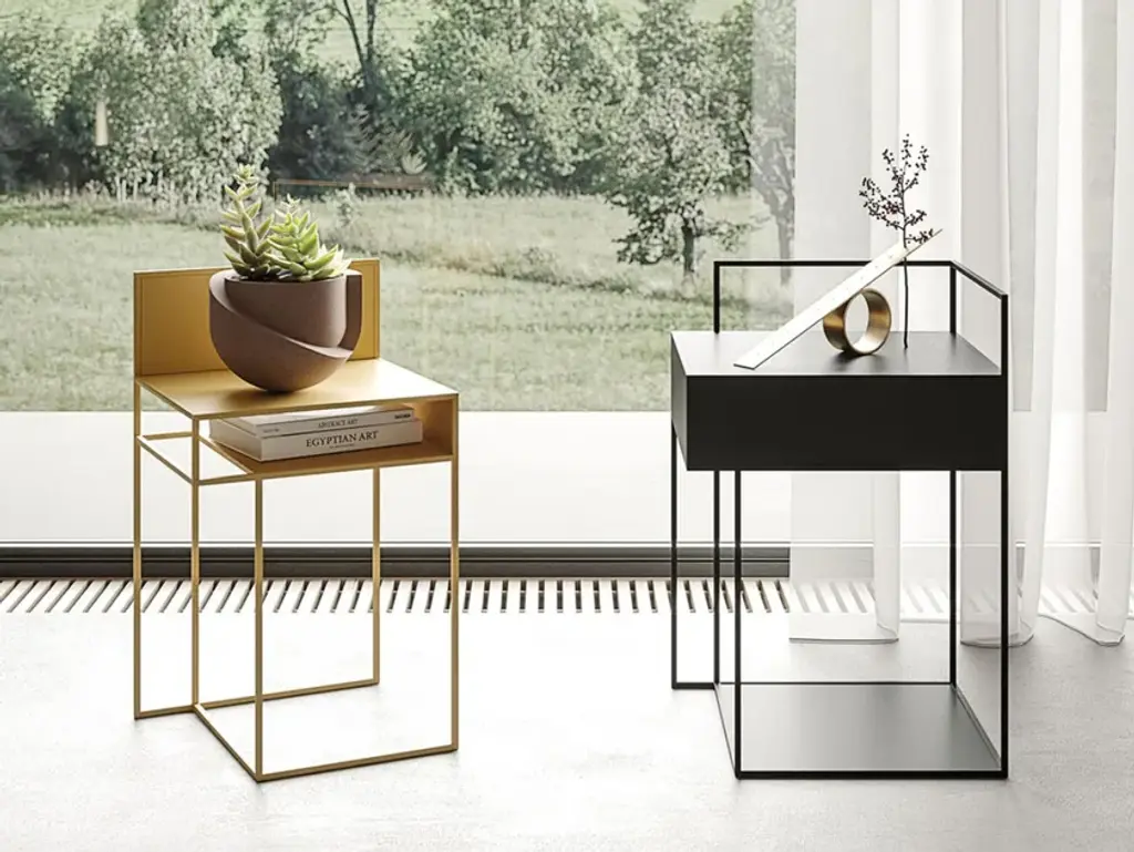 Atik is a collection of living room coffee tables in painted metal that stands out for the particular slim, light-weight shape of the structure, with the table top outlined by a special fold in the metal that gives the entire whole an interesting and highly attractive geometric shape.Thanks to their original appearance, Atik coffee tables are suitable for any room in the home, and they are easy to reposition according to need. Their functionality is further enhanced by the presence of a stowaway compartment to store magazines and other items. Atik is also available with a handy drawer, which makes this coffee table perfectly suitable as a bedside table.