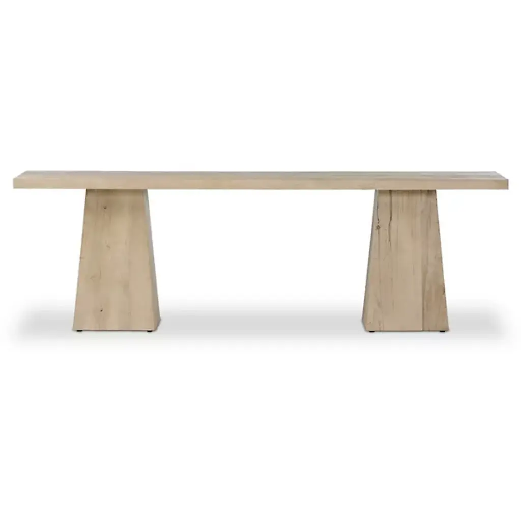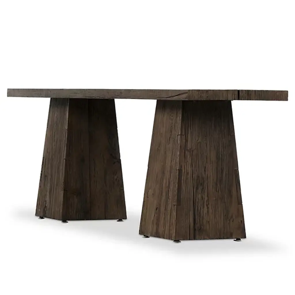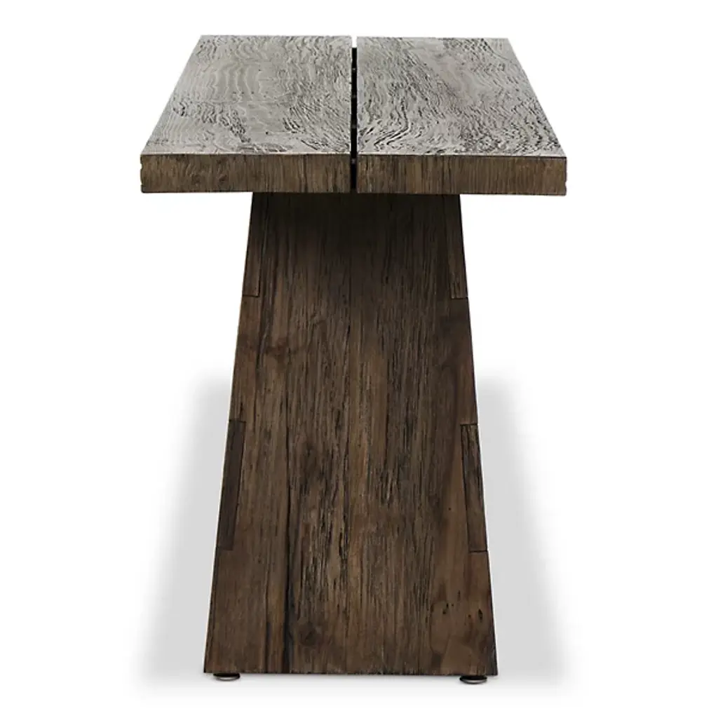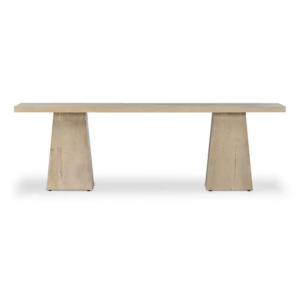 The Atlas Console Table from Four Hands is a beautiful blend of durability and natural aesthetics. Crafted from resilient alder, this console table features resawn material. Your table showcases a streamlined tabletop, providing a minimalist yet functional surface for displaying your favorite accessories and mementos. The framework of the Atlas forms prism shapes, adding an architectural aesthetic to your space. This simple and versatile piece seamlessly integrates into various design styles, becoming a timeless and practical addition to your home.