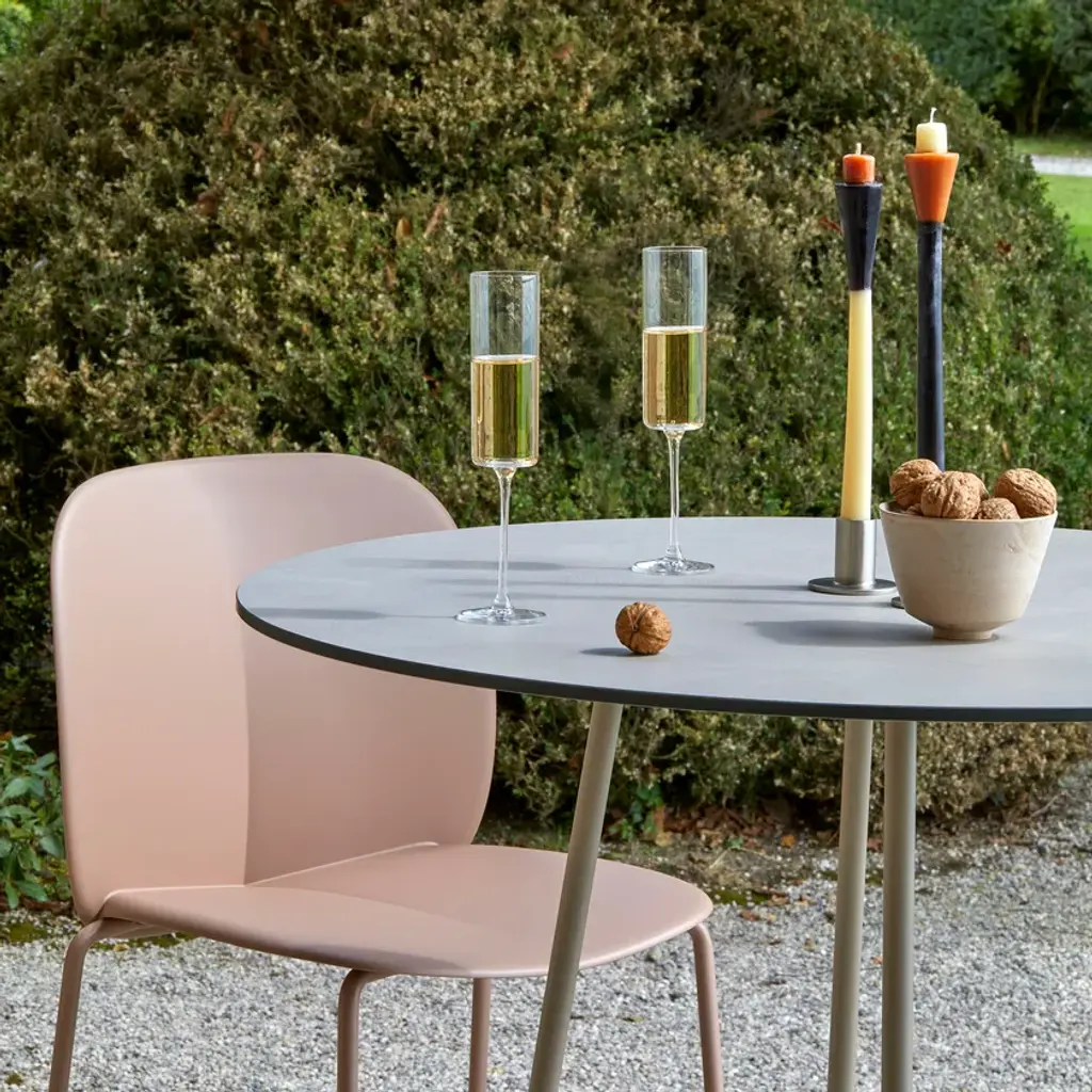 The Atomo project stems from the need to create a table capable of fitting into any environment and becoming its focal point. Lightweight and sturdy, the aluminium structure consists of a die-cast ground base onto which the legs supporting the top are attached. Every shape detail, such as the refined connection between the base and the tubular elements, responds to an aesthetic research that appropriates the most advanced production technology to outline a balanced and contemporary product in style. The wide range of colours and many finishes make it possible to meet the requirements of any space, be it a refined interior or an elegant outdoor space.A project that comes from the need to create a table capable of fitting seamlessly into any environment; like an atom, this table merges into the environment, becoming an integral part of it.
