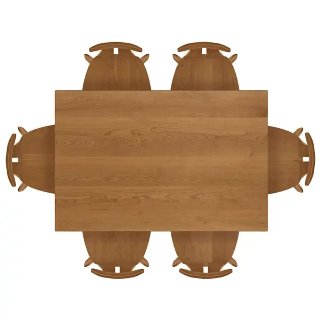 The double-X formation of the Copeland Furniture Audrey Table trestle base creates a state of dynamic tension that is at once elegant and stable; and it's roomy for diners' legs. The entire table is made out of solid American black walnut or cherry, finished in a range of possible finishes. All such finishes are protected by a low-sheen top coat.