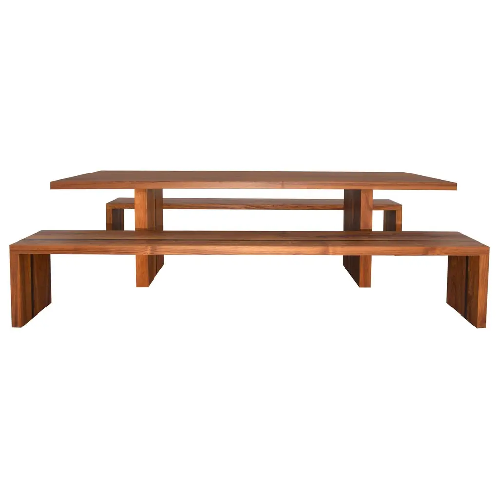 The double-X formation of the Copeland Furniture Audrey Table trestle base creates a state of dynamic tension that is at once elegant and stable; and it's roomy for diners' legs. The entire table is made out of solid American black walnut or cherry, finished in a range of possible finishes. All such finishes are protected by a low-sheen top coat.