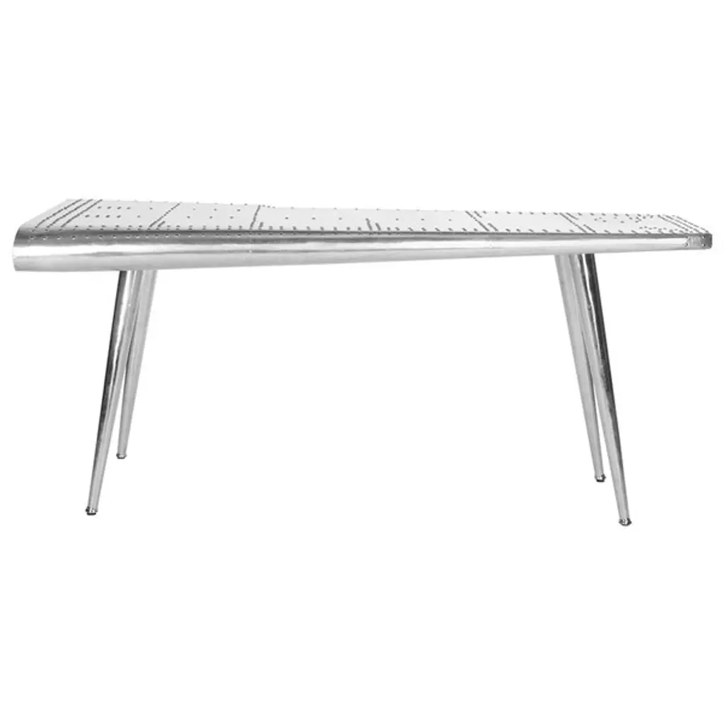 The Aviator Console Table from Safavieh serves as a unique piece of furniture that boasts a vintage look. This console table is brilliantly crafted with high-quality MDF. Also, the table resembles the wing of an airplane, ensuring it will stand out in any setting. And with incredible artisan craftsmanship and a dazzling metallic silver finish, the table is sure to match your dcor perfectly. Incorporate a deluxe console table into your home's dcor quickly and easily with the Aviator Console Table.