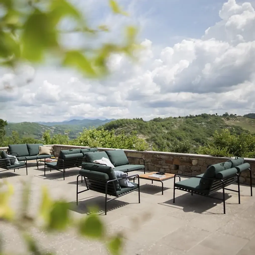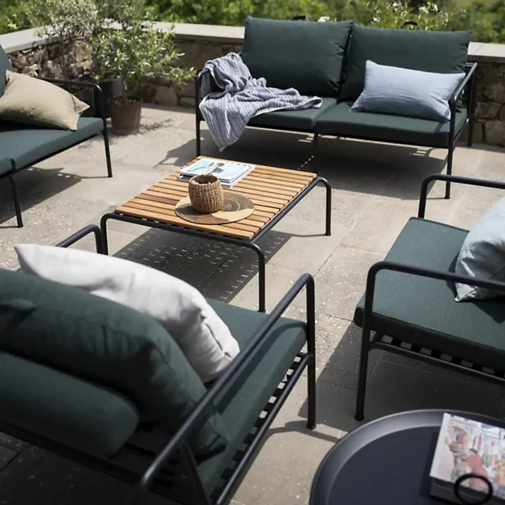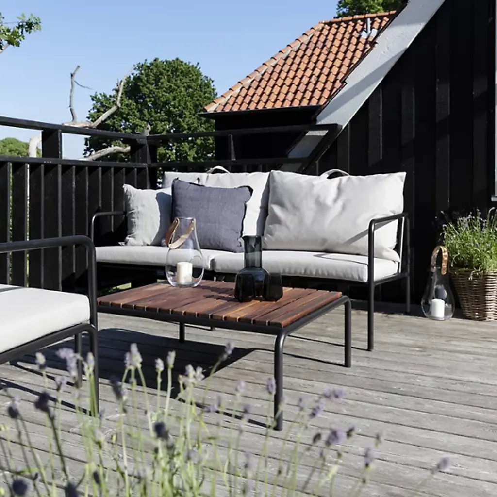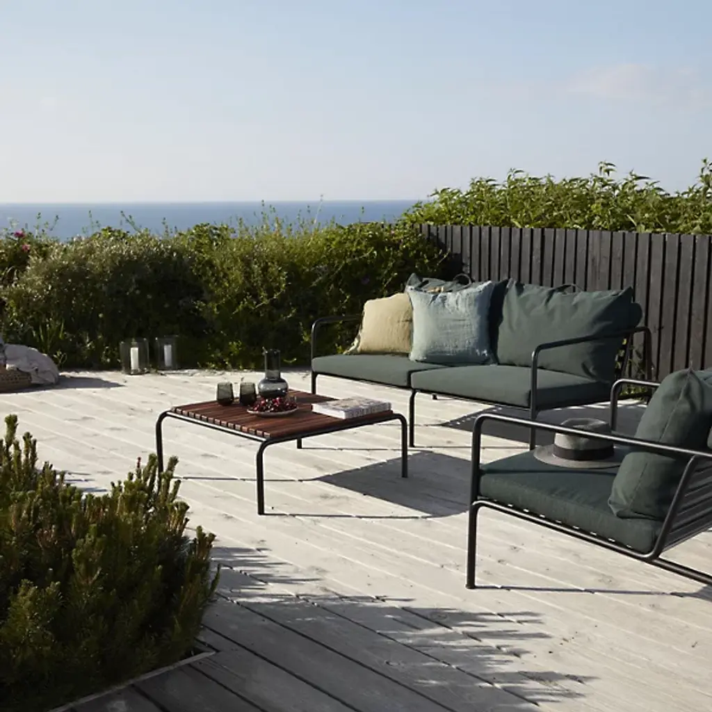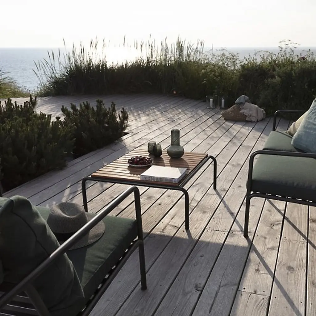 Keep a low profile while setting a restful tone with the Avon Outdoor Lounge Table from Houe at the center of your outdoor living area. It’s a piece designed to enhance the visuals on top and around with an understated silhouette. Its powder-coated metal base stands with short legs to create a handsome geometric silhouette. A water-wicking thermos ash wood top draws one’s attention with rich natural hues and a slatted pattern. The maintenance-free top is resistant to mold and splitting.