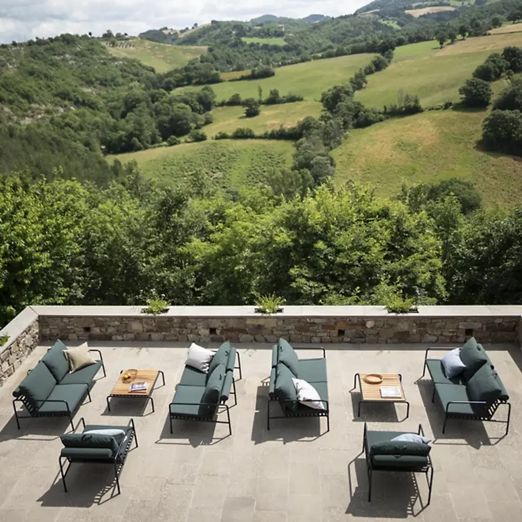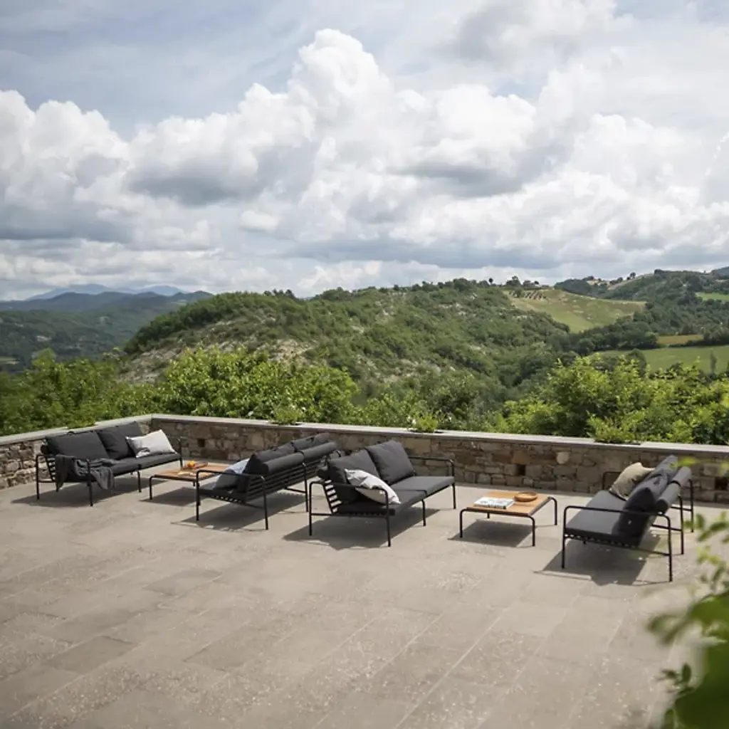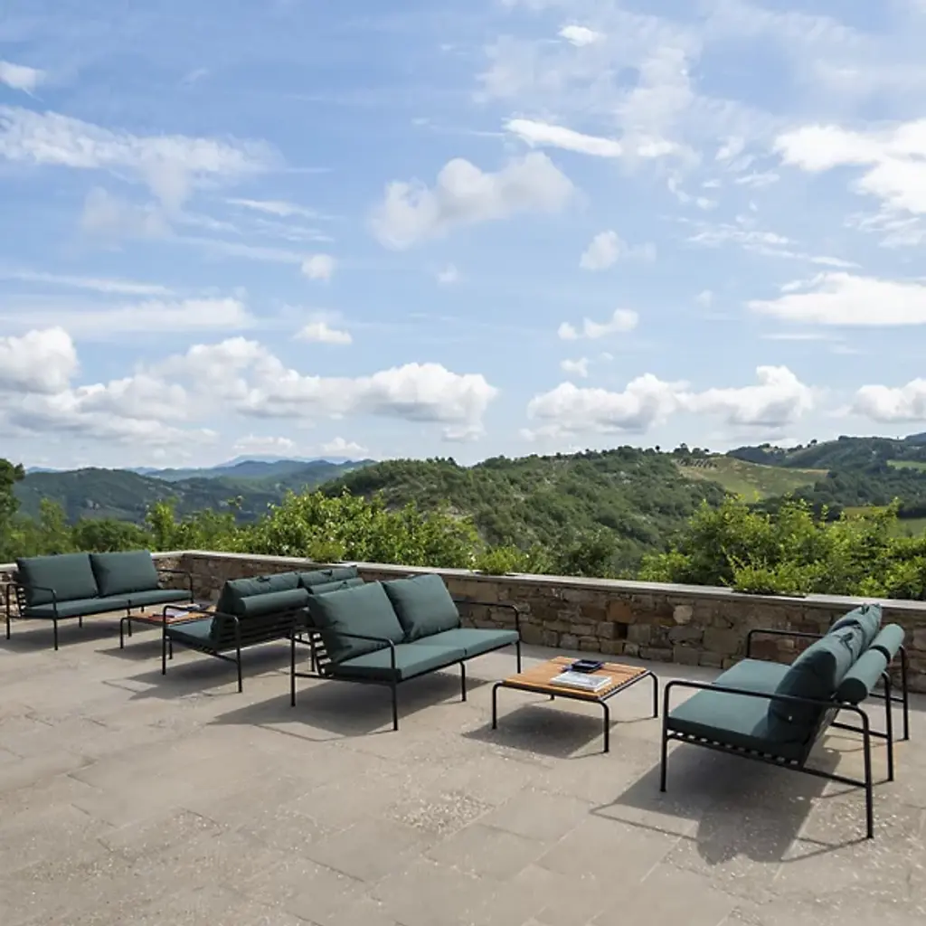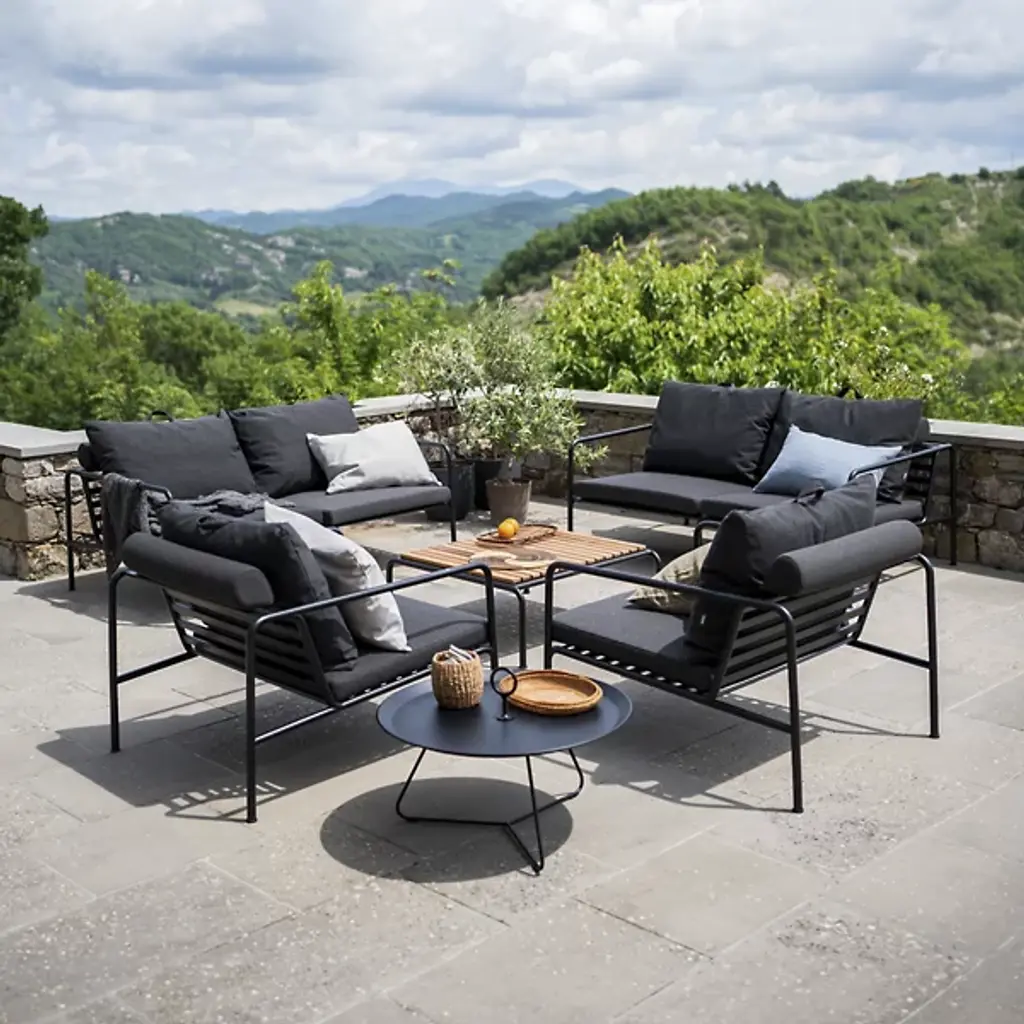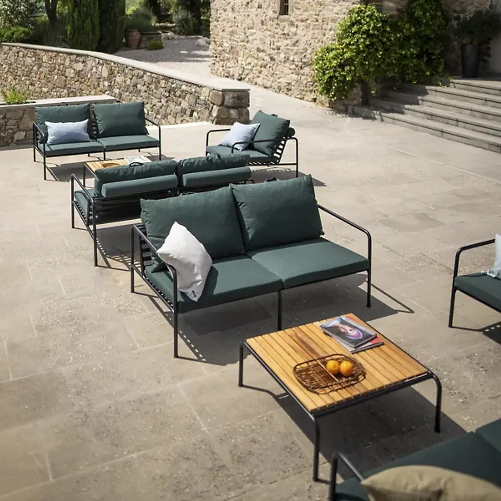 Keep a low profile while setting a restful tone with the Avon Outdoor Lounge Table from Houe at the center of your outdoor living area. It’s a piece designed to enhance the visuals on top and around with an understated silhouette. Its powder-coated metal base stands with short legs to create a handsome geometric silhouette. A water-wicking thermos ash wood top draws one’s attention with rich natural hues and a slatted pattern. The maintenance-free top is resistant to mold and splitting.