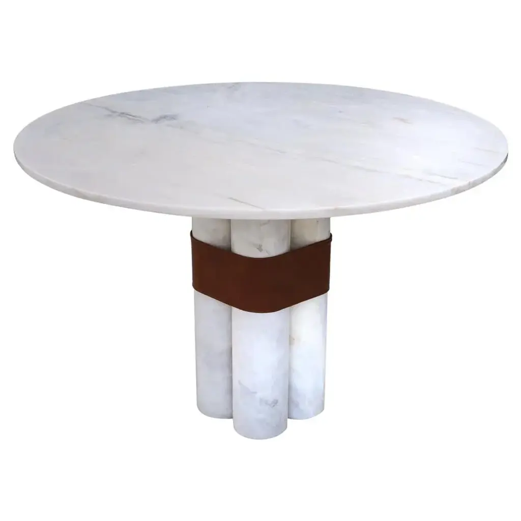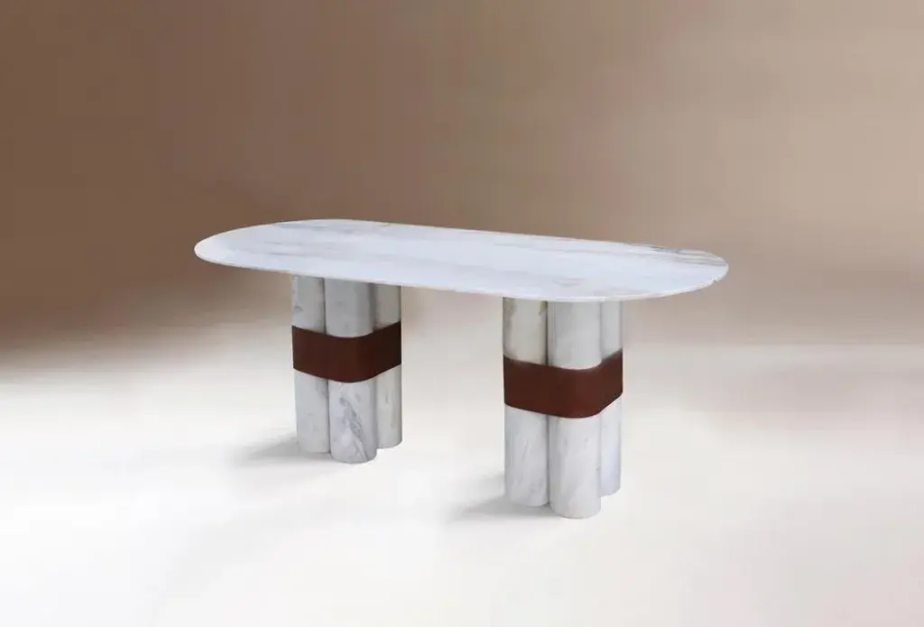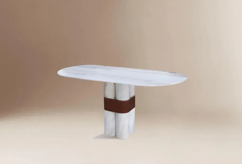 Axis round table by Dovain Studio Dimensions: H 79 x Ø 120 cm Materials: Estremoz white marble, Eco leather Dovain Studio Creative direction by Sergio Prieto, a Spanish artist-designer who was born in Talavera de la Reina in 1994. He dedicated himself to the world of painting professionally since he was 10 years old, and at 18 he began to study design. He has been working in different countries around the world, like China, Índia, France, Italy, Spain and Portugal, collecting experiences and knowledge that shaped his artistic vision from an early age. Now, he lives and works in Lisbon. One of his work’s priorities is the search for the expressive language of objects, creating emotions in those who see and feel his pieces. His artistic vision is printed on each piece of Dovain Studio bringing art, decoration and design, all together within the context of contemporary design culture.