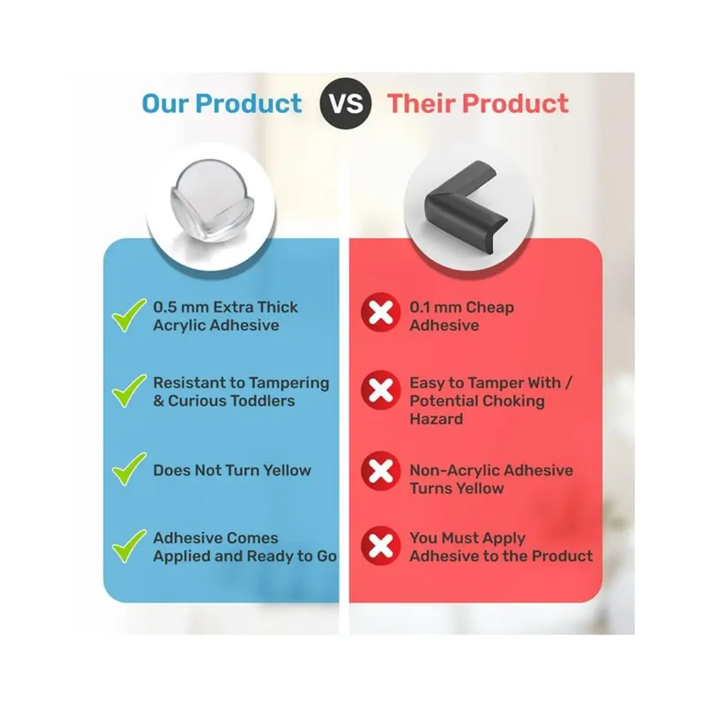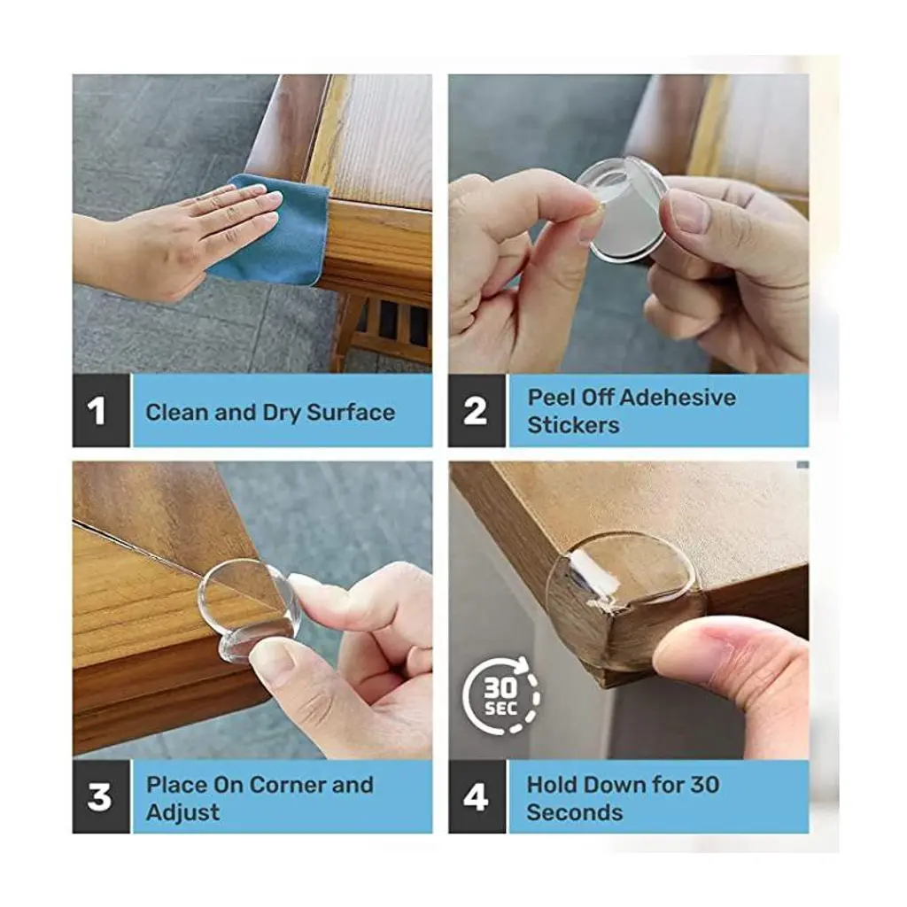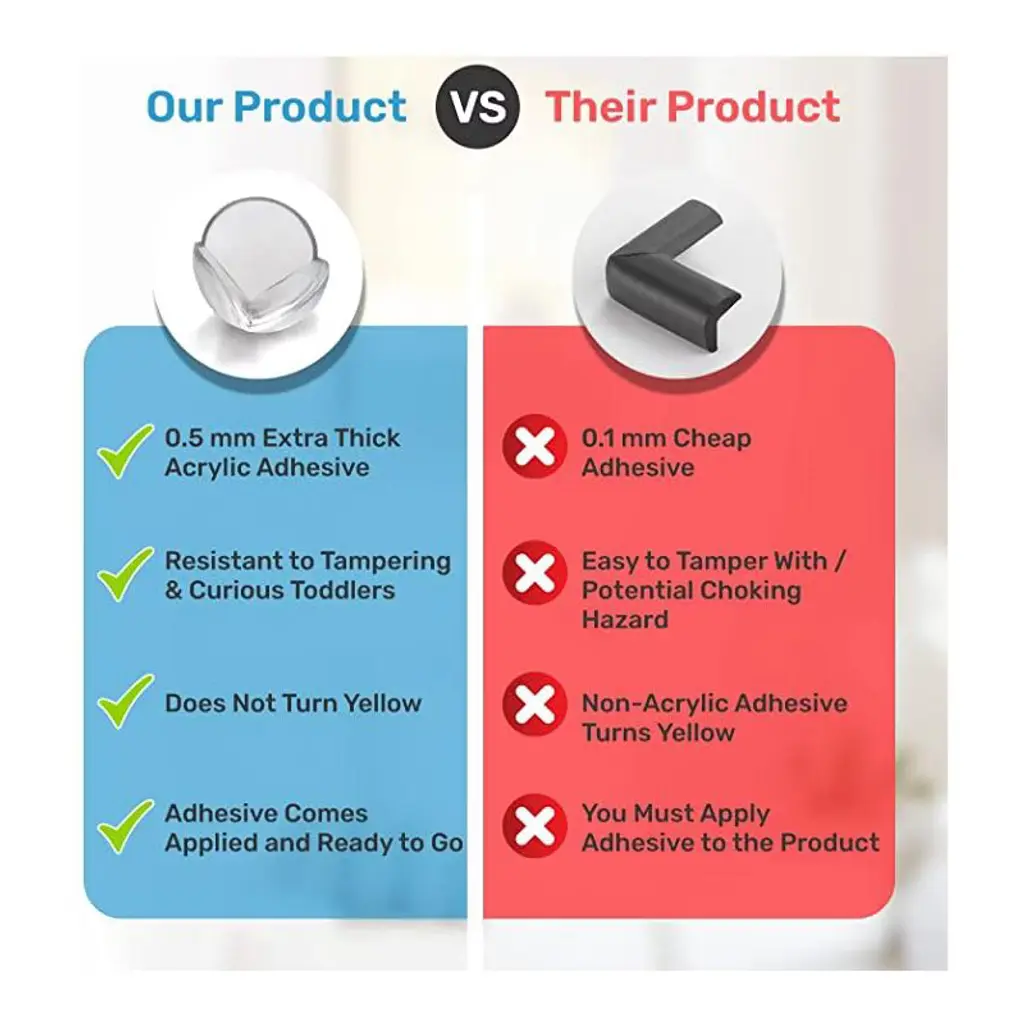 Ensure a secure environment for your little one with our reliable corner protectors. These clear guards are meticulously crafted to deliver exceptional edge safety, protecting your child from sharp corners and minimizing the risk of injury during playtime. Featuring a sleek, round design, our bumpers effortlessly blend into your home decor, providing protection without compromising style. Installation is a breeze, allowing you to focus on what truly matters—keeping your child safe. Made from BPA-free, food-grade silicone, these protective guards offer maximum security and peace of mind. With a strong, clear acrylic adhesive, our corner protectors ensure superior durability and effectiveness, making them the perfect choice for any household with young children.