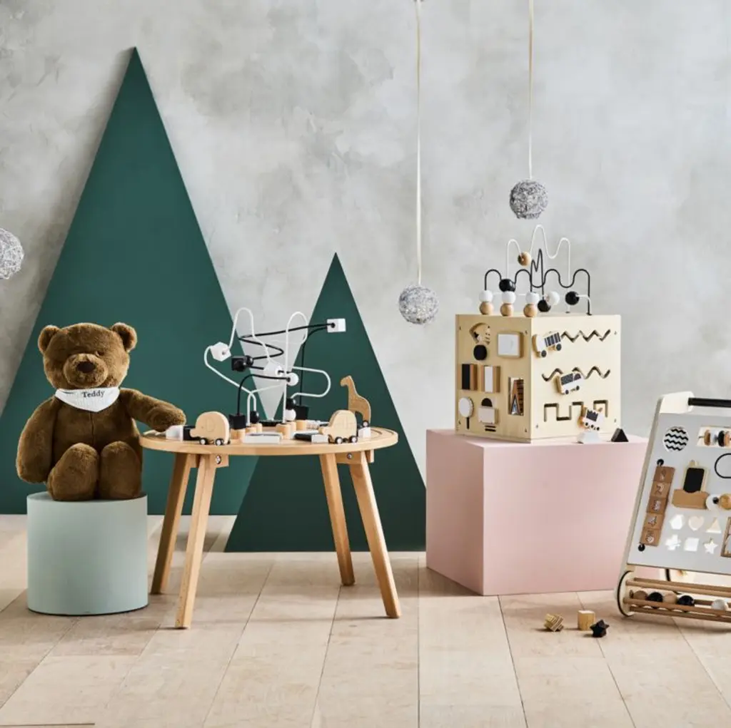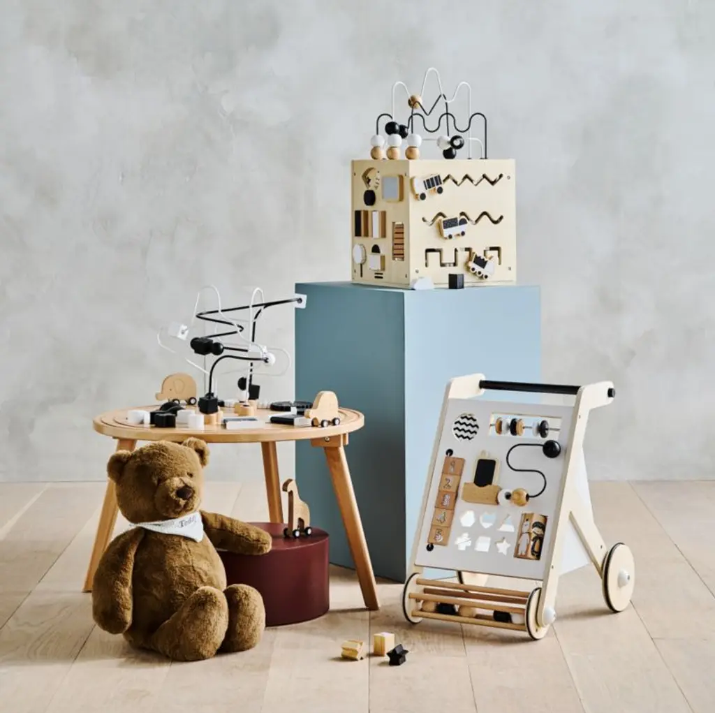 What's black and white and fun all over? You guessed it! In a timeless black-and-white design, our wood activity table is one that can be passed down through the family and loved for years. Small animals zip around the perimeter thanks to smooth-motion wheels, while multiple motor-skill-enhancing games can be found within. This parent-approved table is a one-stop shop of endless fun and is a Crate & Kids exclusive.