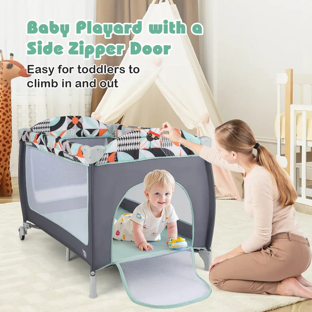 Babyjoy 3 In 1 Baby Playard Portable Infant Nursery Center W/ Zippered - See Details - Green