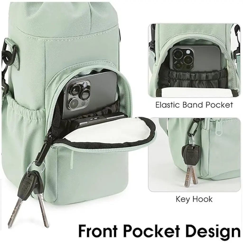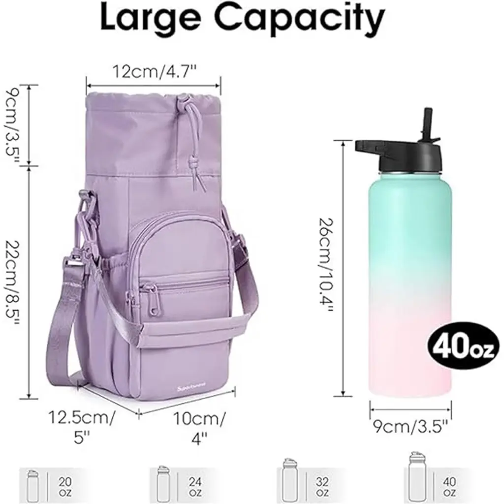 Babyyer Large Capacity Portable Water Bottle Bag 32oz 40oz Insulated Water Bottle Carrier Sling Bag With Strap And Phone Pocket, Black