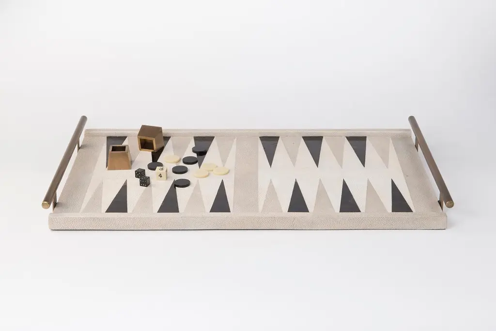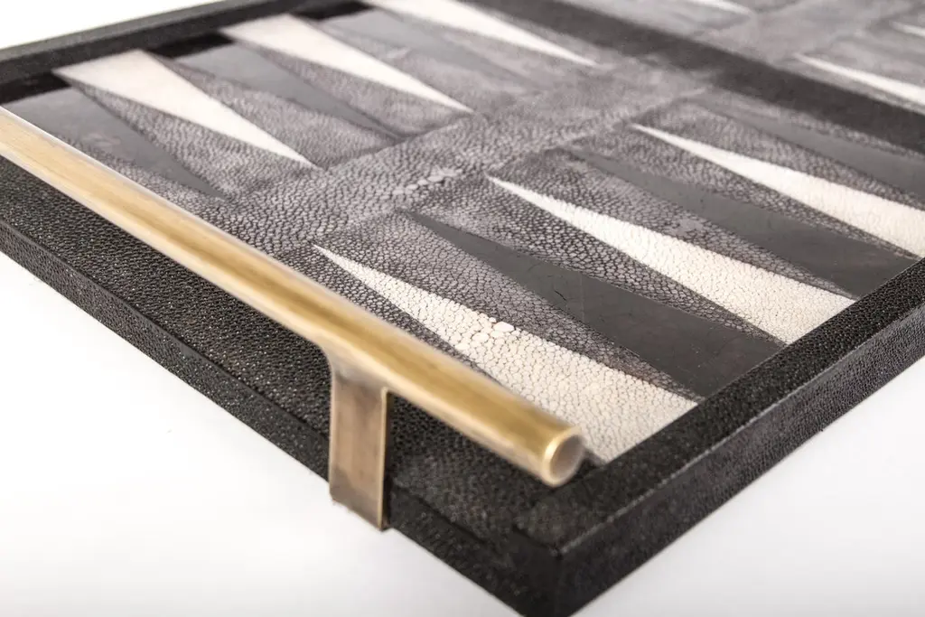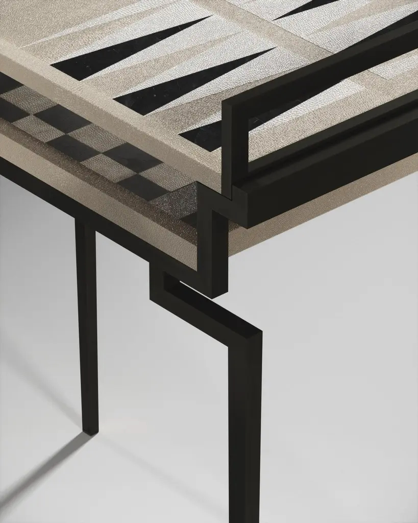 Backgammon Chess Table In Shagreen And Brass By R&y Augousti