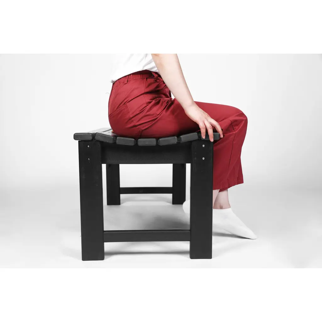 Backless Hdpe Adirondack Bench With Wood Texture (Excluding The Table) - Black