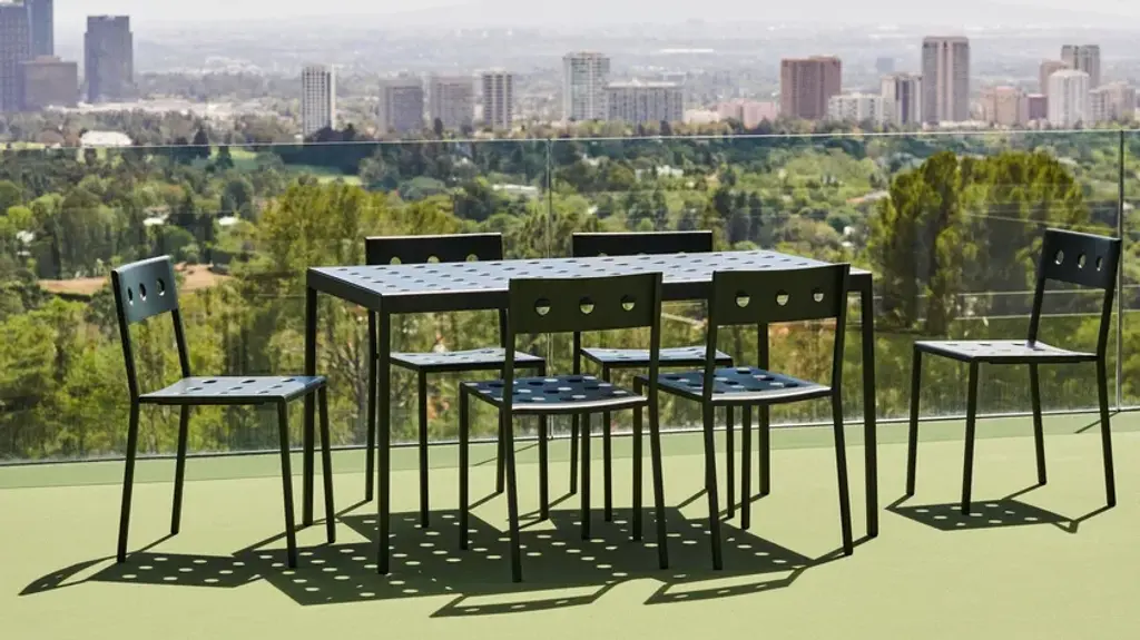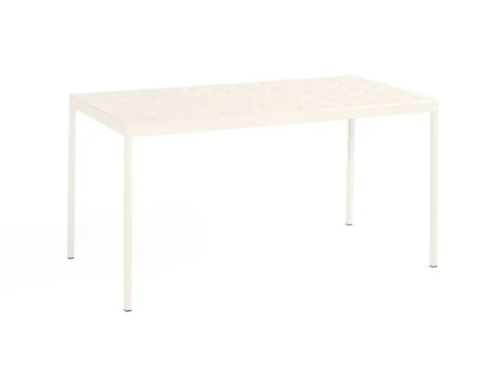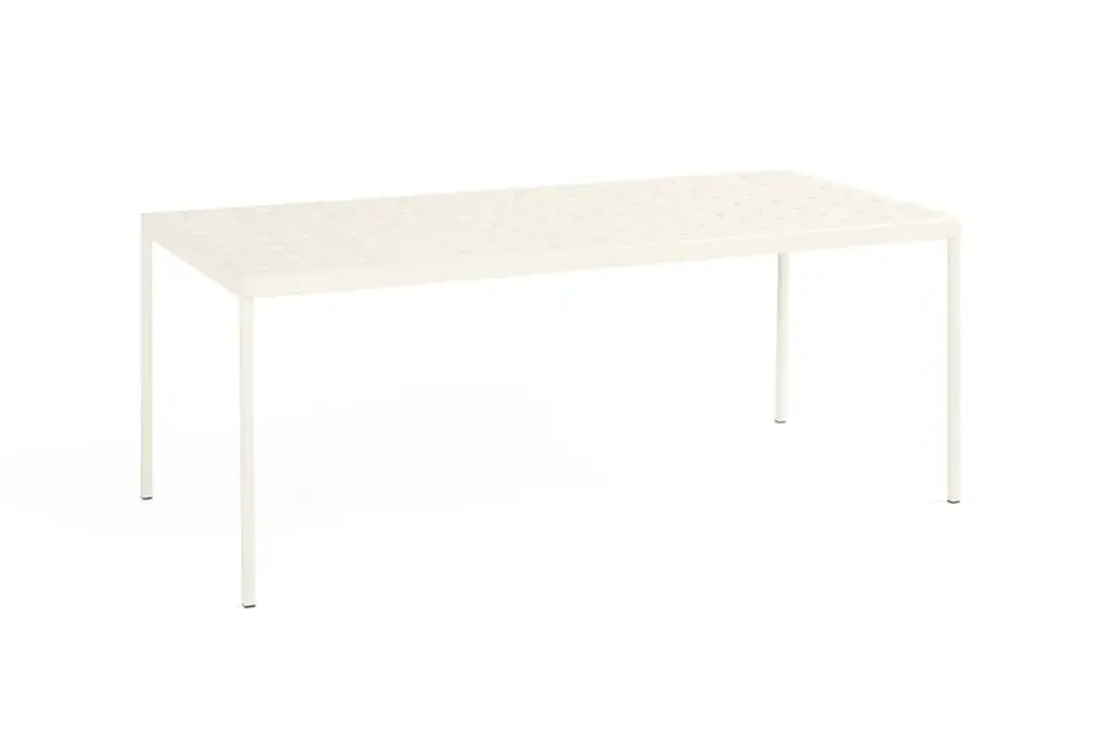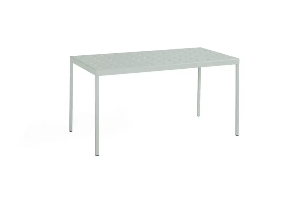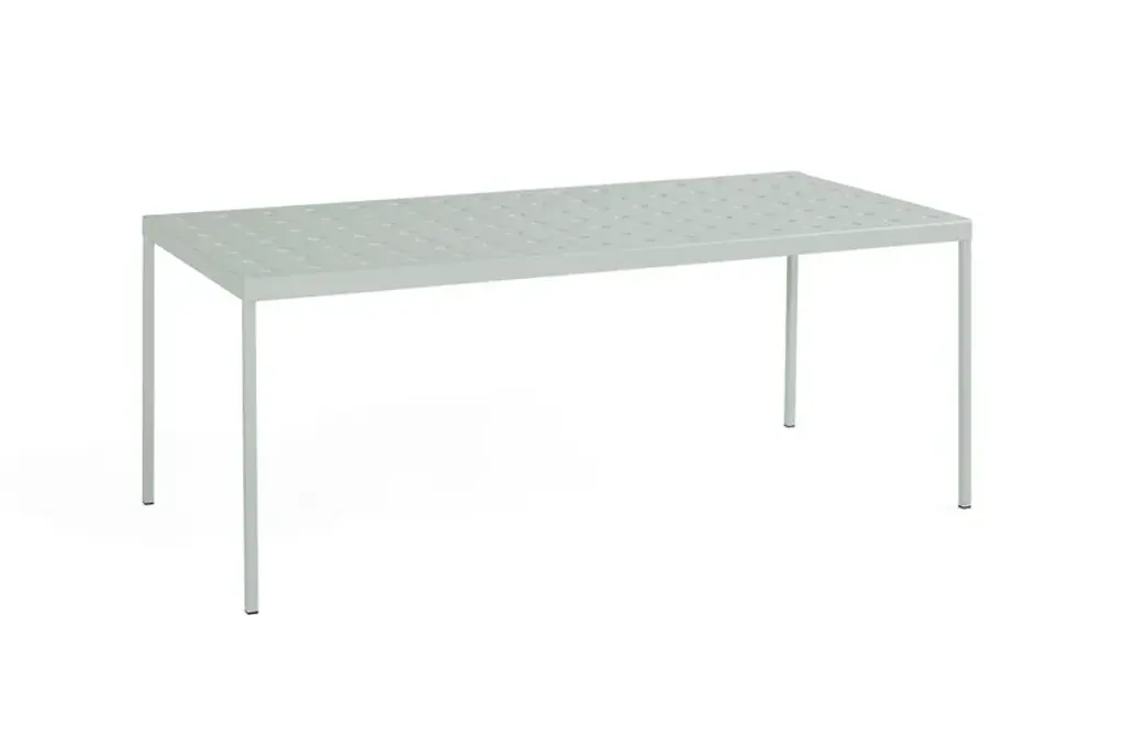 Balcony, designed by Ronan & Erwan Bouroullec for HAY, is a rectangular table for the outside, with simple and square lines, characterized by holeson the surfaces that not only define the design but also reinforce the top. Balcony is suitable for all types of spaces, from small balconies and terraces to gardens and other larger outdoor areas.Made of powder coated steel with an outdoor primer for optimal strength and durability, Balcony is available in a number of different color options.Available in 5 finishes:- Anthracite power coated steel (RAL 9011)- Iron red powder coated steel (RAL 8015)- Desert green powder coated steel (RAL 140 50 05)- Dark forest powder coated steel (RAL 180 20 05)- Chalk beige powder coated steel (RAL 075 80 10
