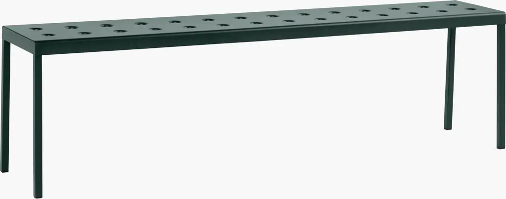 HAY’s low Balcony table is part of a clever collection of outdoor furniture designed by the Bouroullec brothers. Made of thin steel sheet, the elegant Balcony tables are incomparably light and easy to move – a perfect addition to the balcony, garden or patio. The sturdy Balcony table can also be used as an extra seat. Featuring a weather-resistant coating the Balcony collection is as carefree as it looks. The round holes pressed through the steel plate provide multiple functions: they add character and softness to the geometrical design and allow rainwater to drain off the table's surface, while also strengthening the structure of the furniture.