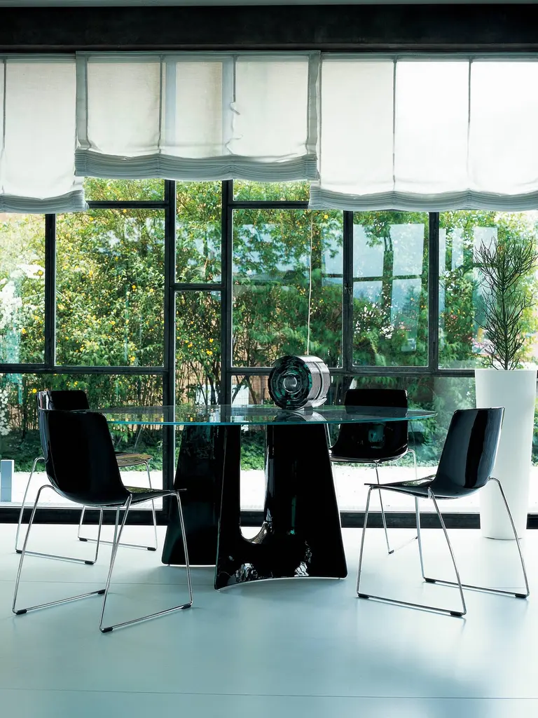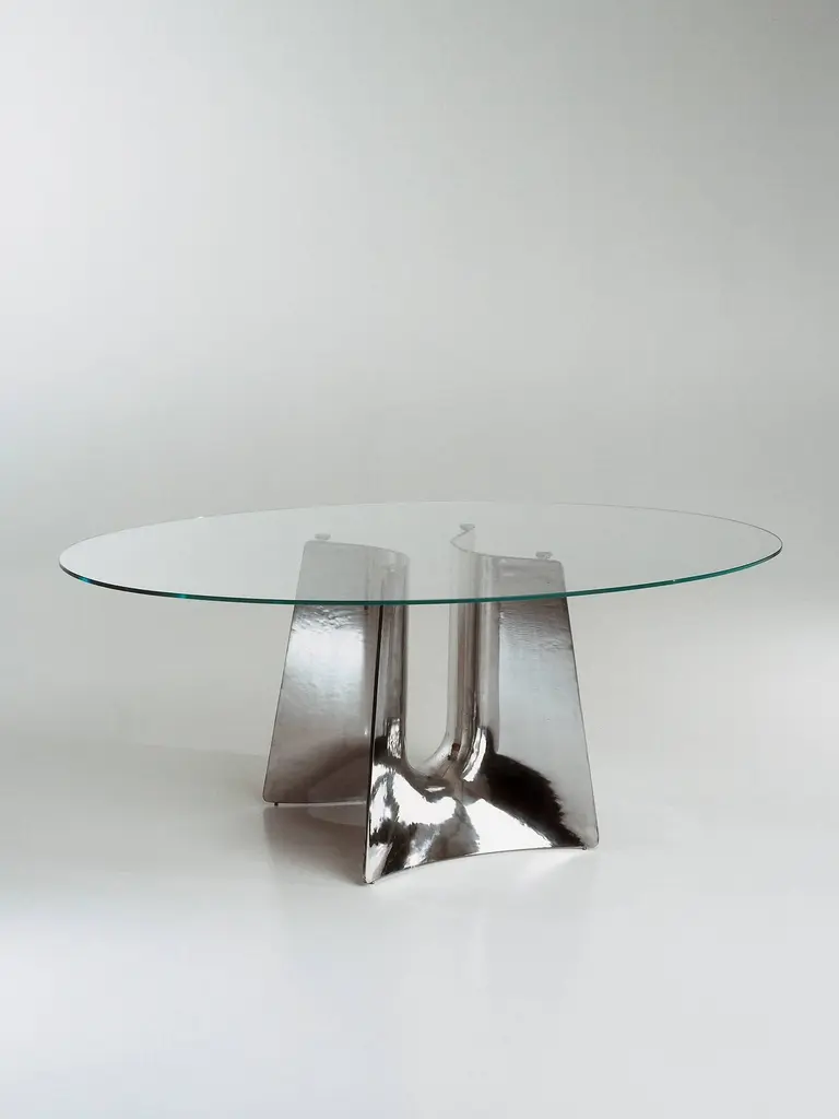 The form of the Bentz table base derives from a simple profile swept along a down and up trajectory. In doing so, it creates an airy and sculptural central focus with the functional characteristics of a column base. The resulting surface and volume seeks hierarchy and interplay between the actual legs of the people seated across from one another. The applied reflection and colour draw in and on the environment to further establish an objectwith placement, rather than the placement of an object.Table with base structure in aluminium sand-casting and tempered glass tops. The base is available in polished aluminium.Jeff Miller is a leading American product designer. In 2011 he joined Poppin as the VP of Design, where he headed a multidisciplinary team dedicated to developing clean, clever and colorful products for working happy. He founded his own New York design practice, consulting for a range of clients including: Bosch, Cuisinart, Herman Miller, Itoki, Lenovo, Panasonic and Samsung. Jeff’s work has been distinguished by design awards and museum exhibitions and his designs have been highlighted in numerous international design publications.