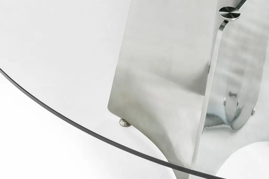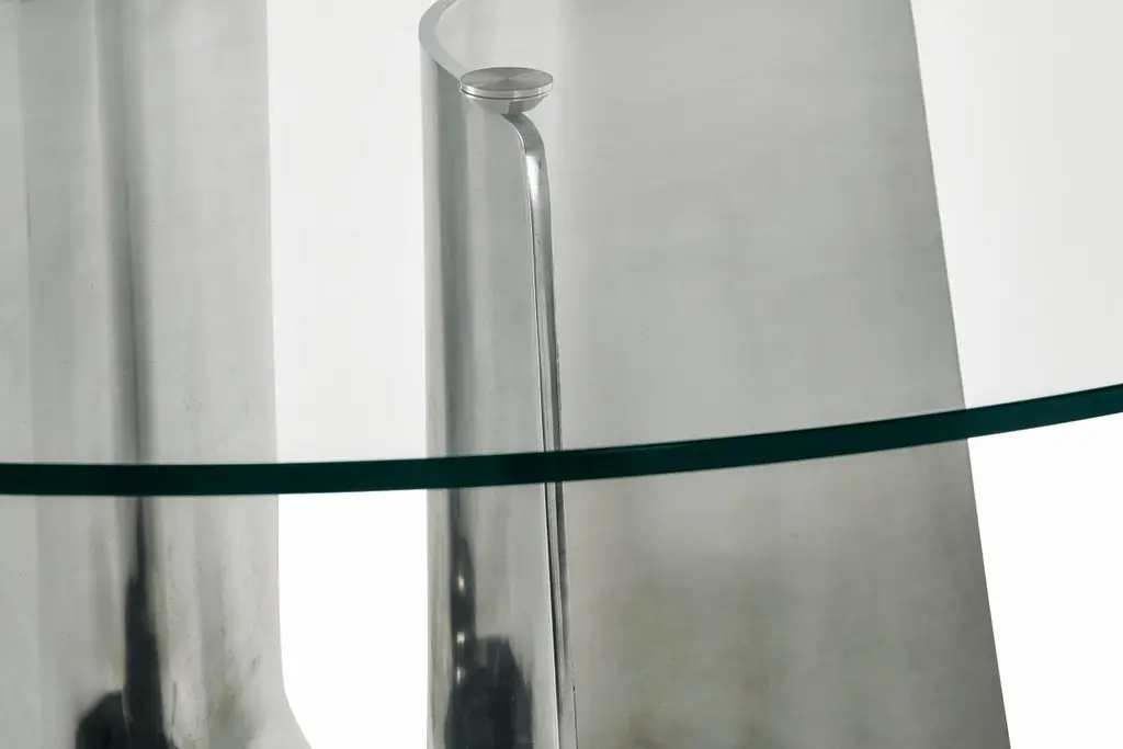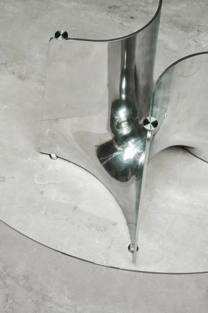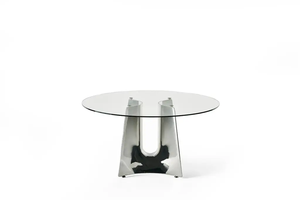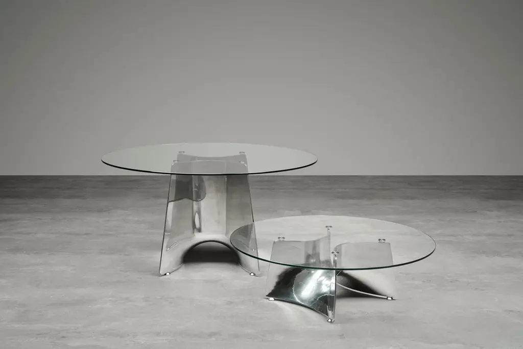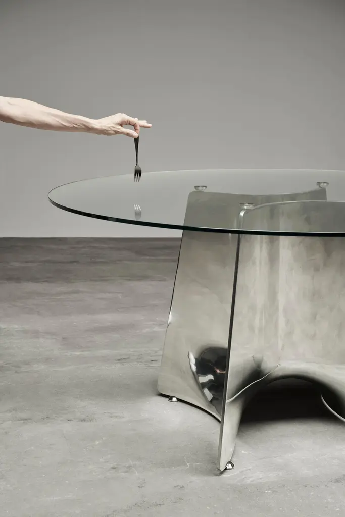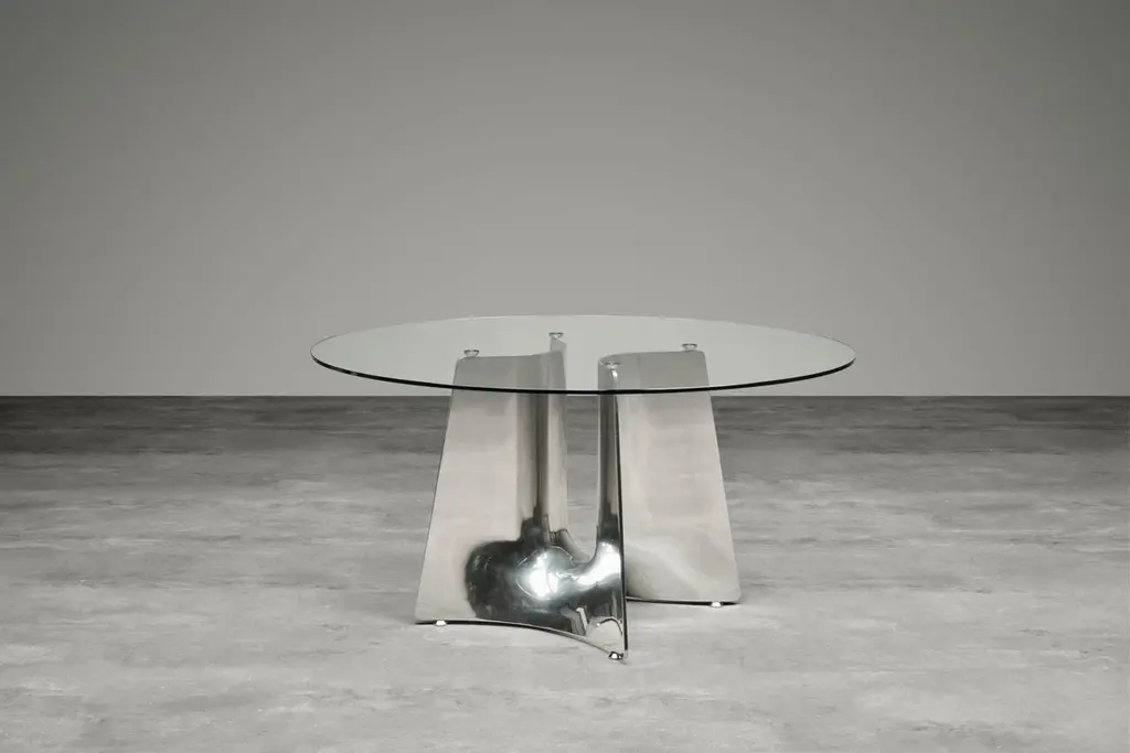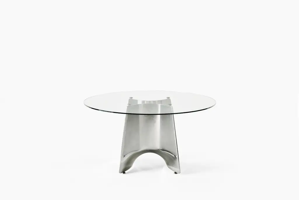 The form of the Bentz table base derives from a simple profile swept along a down and up trajectory. In doing so, it creates an airy and sculptural central focus with the functional characteristics of a column base. The resulting surface and volume seeks hierarchy and interplay between the actual legs of the people seated across from one another. The applied reflection and colour draw in and on the environment to further establish an object with placement, rather than the placement of an object.Table with base structure in aluminium sand-casting and tempered glass tops. The base is available in polished aluminium.Jeff Miller is a leading American product designer. In 2011 he joined Poppin as the VP of Design, where he headed a multidisciplinary team dedicated to developing clean, clever and colorful products for working happy. He founded his own New York design practice, consulting for a range of clients including: Bosch, Cuisinart, Herman Miller, Itoki, Lenovo, Panasonic and Samsung. Jeff’s work has been distinguished by design awards and museum exhibitions and his designs have been highlighted in numerous international design publications.