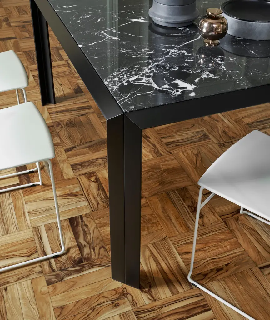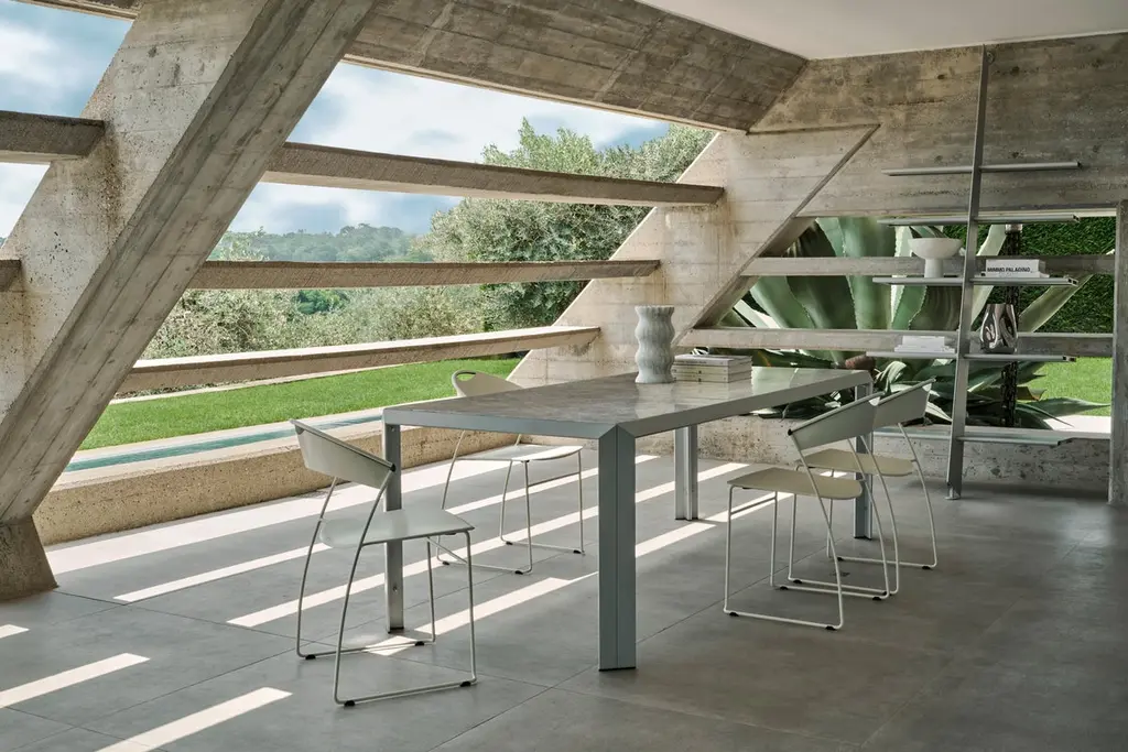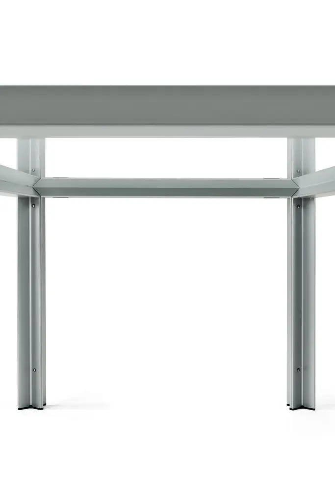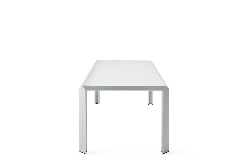To design an essential table that stands out for its details. What might seem like a contradiction in terms - the essential and the distinctive detail - has been resolved by Mangiarotti by means of the simple combination of two “L” shaped extrusions that become a “T” with a single 45° cut: the table as a child would draw it is thus transformed into a visually refined and suspended object, and a structurally solid, light product.System of square and rectangular tables. Structure in extruded satined aluminium. The tops, with bevelled borders, are inserted flush with the structure and are available in the versions: in 12 mm translucent tempered acid-etched crystal.Angelo Mangiarotti, Milanese architect and designer, graduated from the Politecnico di Milano in 1948, leaving a significant mark on 20th-century Italian design. Renowned for the balance between form and function, he collaborated with prestigious companies, contributing to the success of modern Italian design. Among his notable architectural works are the skyscraper in Niguarda, Milan, and the church of San Giovanni Battista in Augusta. His minimalist approach and attention to construction precision are also reflected in furniture and everyday objects, which have become design icons. Mangiarotti was a member of the ADI (Association for Industrial Design), emphasizing his commitment to shaping the landscape of Italian industrial design.