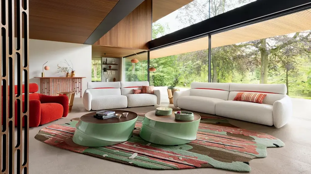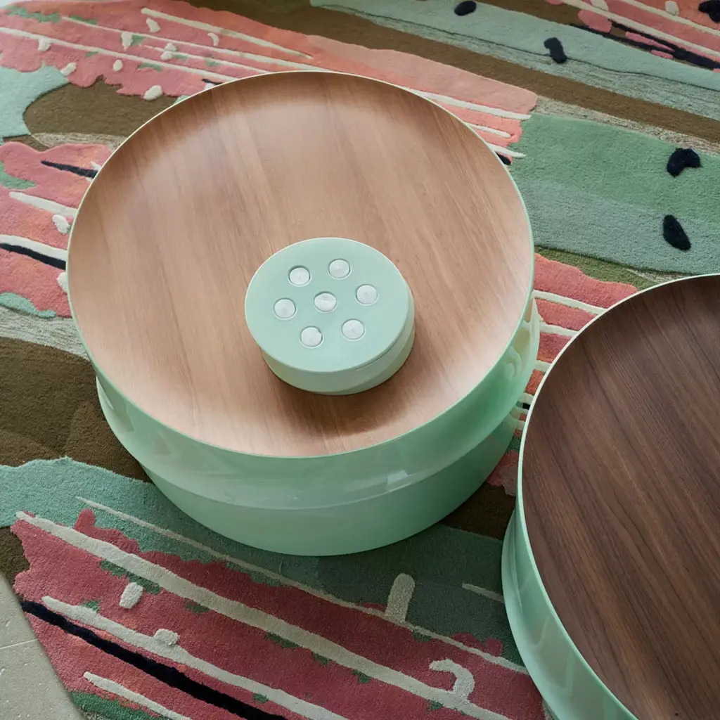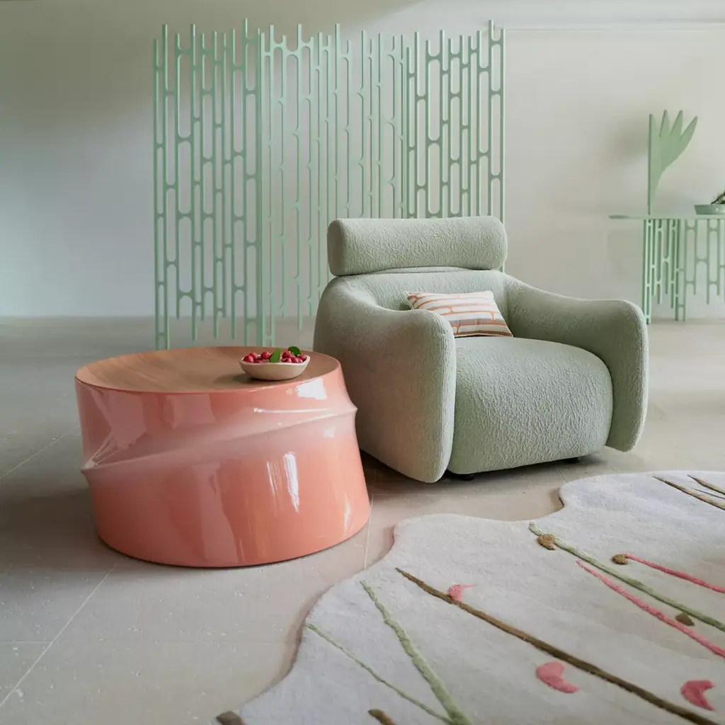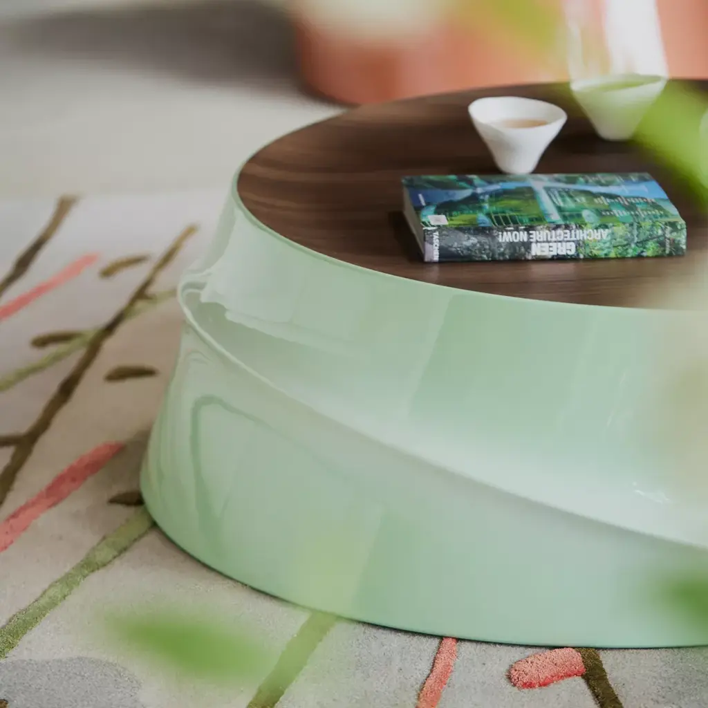 In naming this collection “Bamboo Mood", the designer wanted to weave a metaphor around bamboo, a powerful symbol of the key values of Chinese culture: it represents integrity, flexibility, simplicity and harmony. Jiang Qiong Er reinterprets these values in a poetic, often quirky and always elegant way, creating this complete collection with a sofa, screen, console, cocktail tables, rugs and ceramics. The cocktail tables gracefully evoke a bamboo stem, with its highlighted gradient vein delicately rhythmizing the slanted line. Available in a monochrome lacquered version or with a wood-look tabletop, available in a wide range of colors.