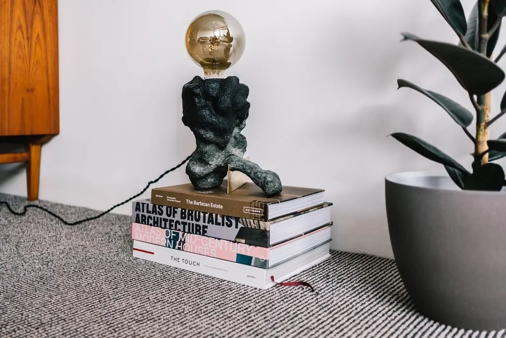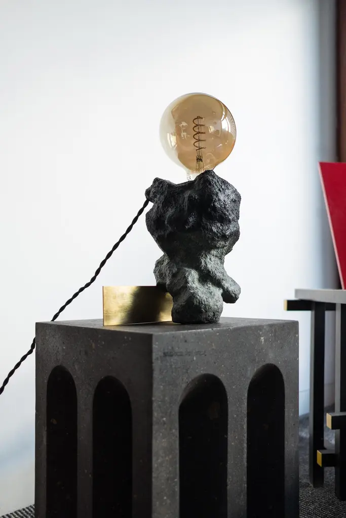 Barbican Floor Light No.2 by A SpaceDimensions: H36,83 x D21,59 x H21,59 cmMaterials:Misc recycled.All our lamps can be wired according to each country. If sold to the USA it will be wired for the USA for instance.The design duo conceived the Barbican Collection over the spring/summer of 2020 while on lockdown at the eponymous London architectural and cultural landmark. With supplies scarce, they turned away from materials such as marble and turned to what was on hand - cardboard, packaging materials, foam, food containers, and scraps of wood and metal. The work presents the philosophical position wherein value consists of the time spent interacting with a piece and seeing it take shape - in creating a unique material and in discovering the ways in which it acquires a life of its own, informing both the process and the design. Made using a fusion of methods learned and reinterpreted from places as different as Western and Eastern Europe, USA, Vietnam and Japan, the work maintains a connection with something global and eternal, while responding to what is currently happening in the world. The Barbican Collection calls into focus the process of reusing and recycling materials through an unexpected combination of tradition and experimentation. Crafted with an original mixture based on gypsum, recycled paper, and natural glue and finished with natural pigments and a waterproof topcoat, the pieces are both light and durable. The layers and hours of handiwork are reflected in the pieces, which explore the concepts of luxury, social and environmental awareness, and transformation.A S P A C E is a New York-based design & art studio, co-founded by Anna Aristova and Roza Gazarian in 2016. Their collaborative pieces are an attempt to bring in the timeless beauty of nature to contemporary lifestyle, whether it’s functional furniture or a decorative object. The essence of each of their creations is a sense of a vast open space, where ideas, thoughts or feelings spontaneously arise, evolve through experimentation and ultimately manifest as a functional art piece. Each object is a one-of-a-kind creation that beckons to look beyond mere form and material, and to connect to the primordial nature of the elements. Their work is a constant balance of opposites -- improvisation and thoughtful planning, intuition and knowledge, organic and geometric, timelessness and impermanence.