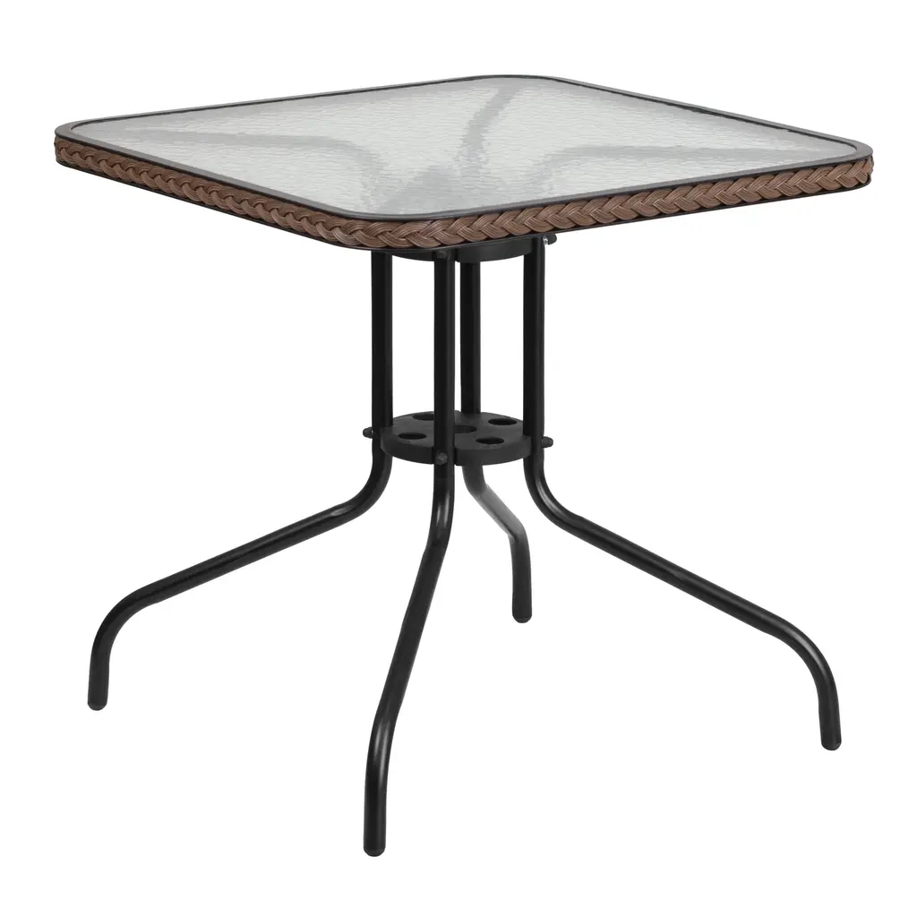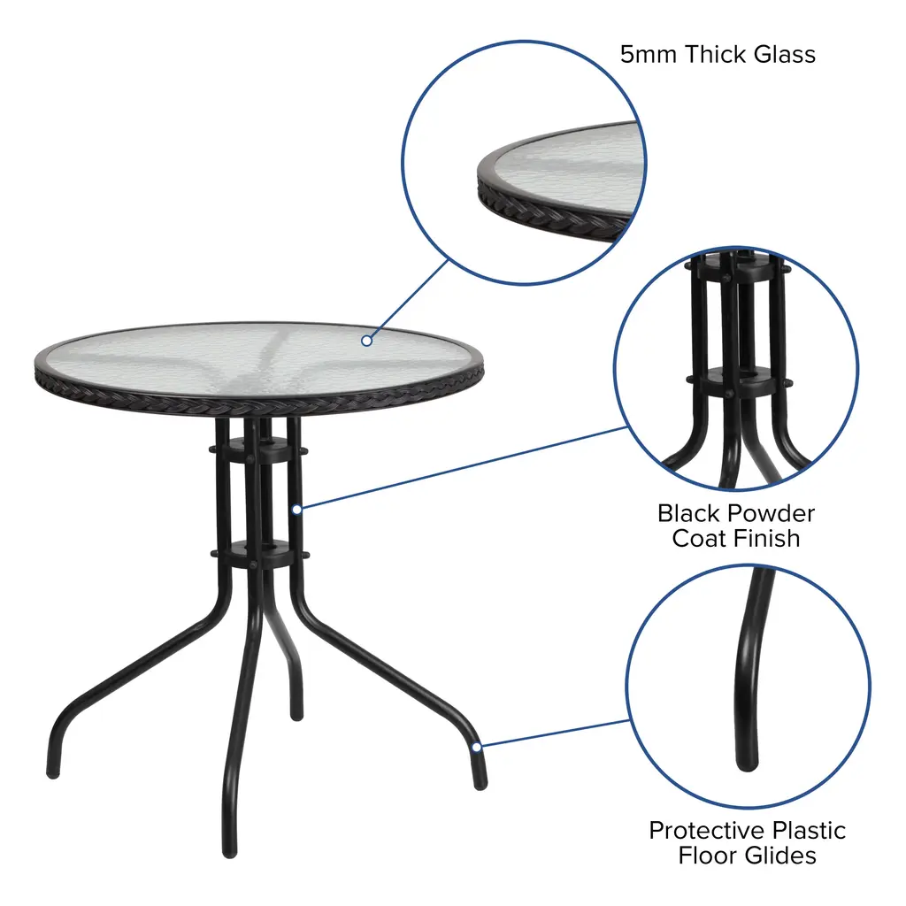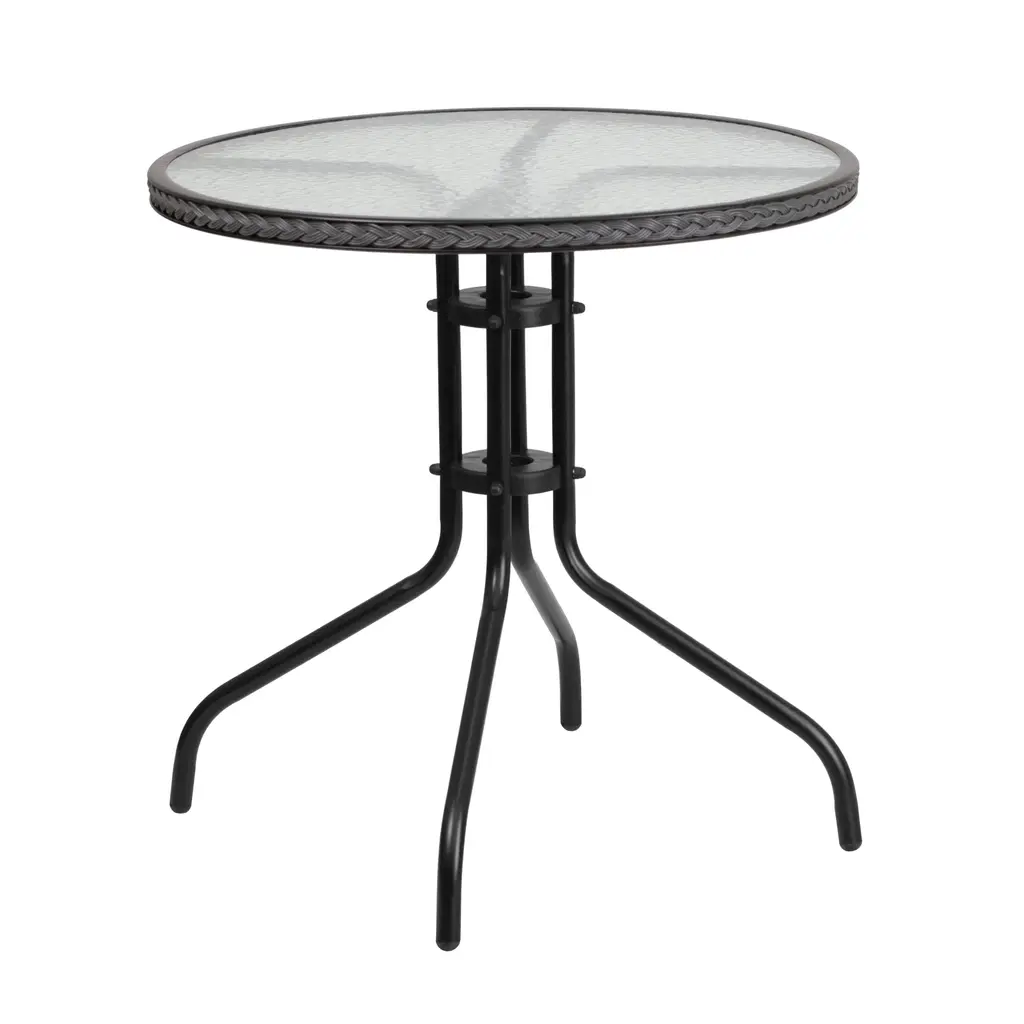 Barker 28'' Round Tempered Glass Metal Table With Rattan Edging
