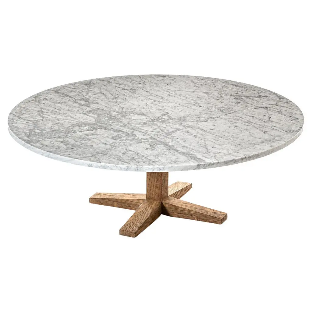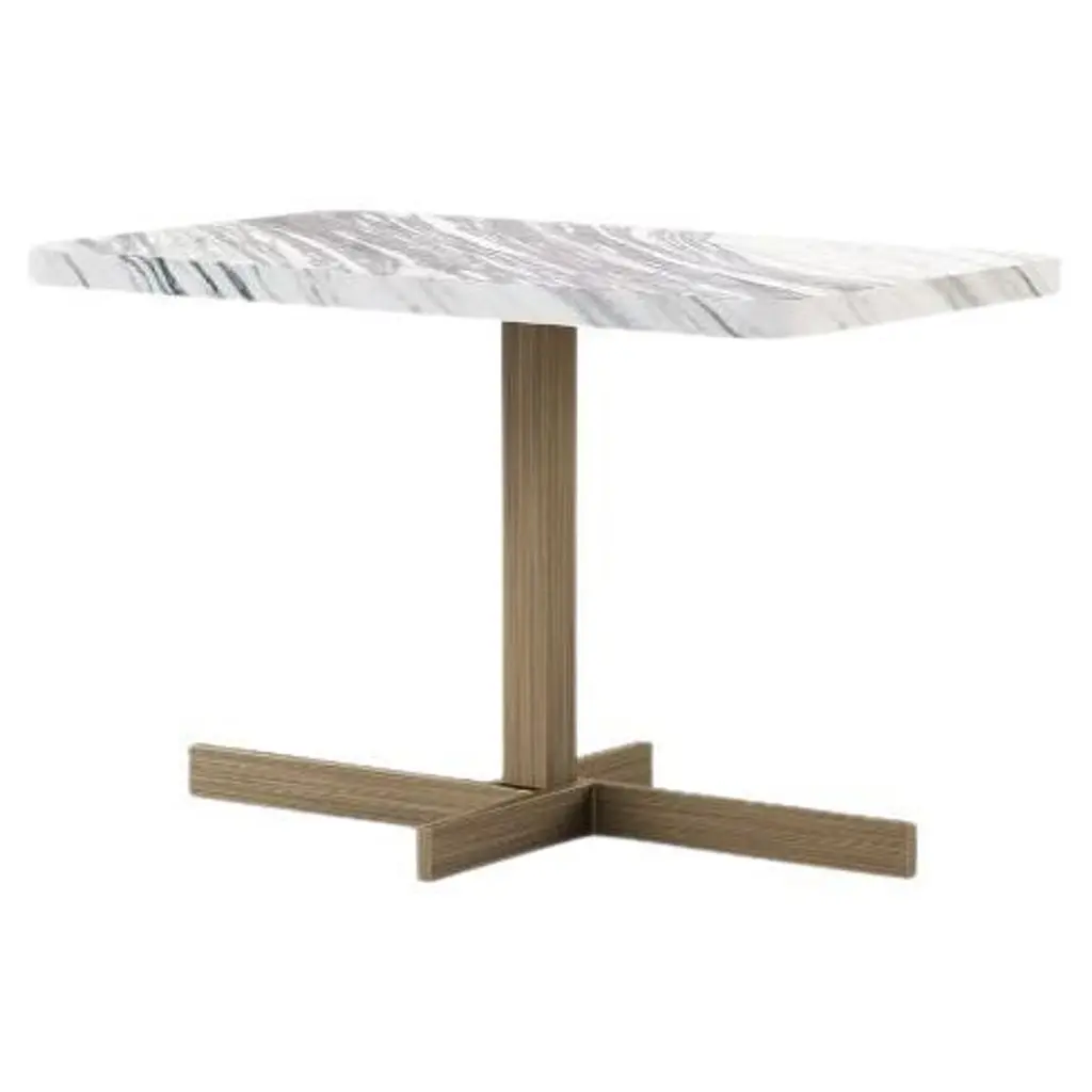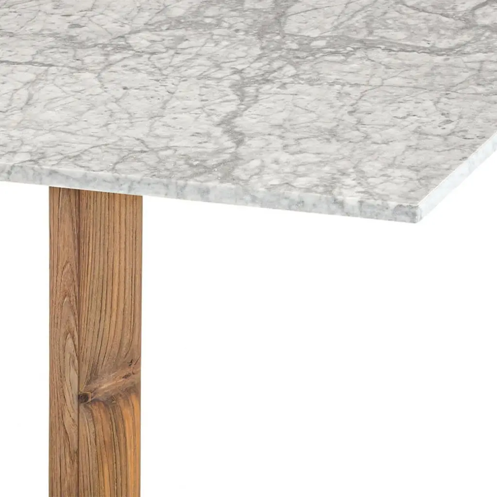 Table square low Barletta with structure in solid teakwood and with polished carrare white marble top.