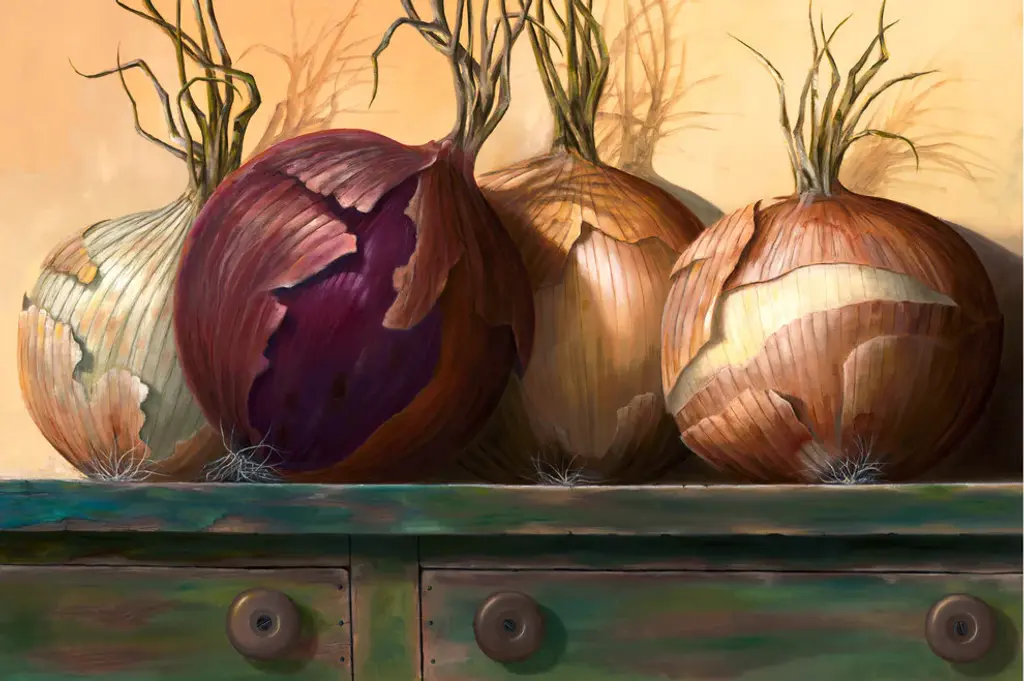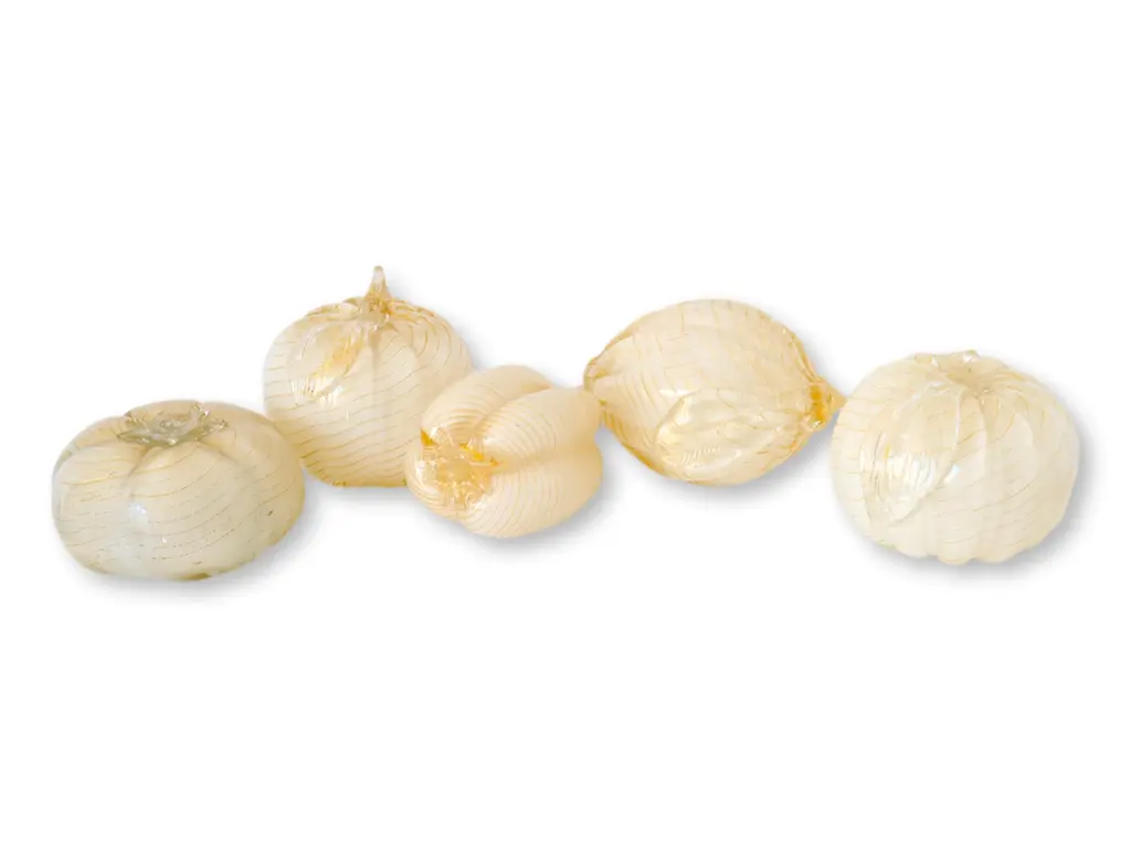 Stunning five piece set of vintage Italian Murano glass vegetables and fruits. Attributed to one of the finest makers, Barovier & Toso. Each hand-blown piece is has fine gold lines running through and overall fine gold dust in the glass giving it a shimmery luminescence. No maker's marks. Average size is 6" x 5".