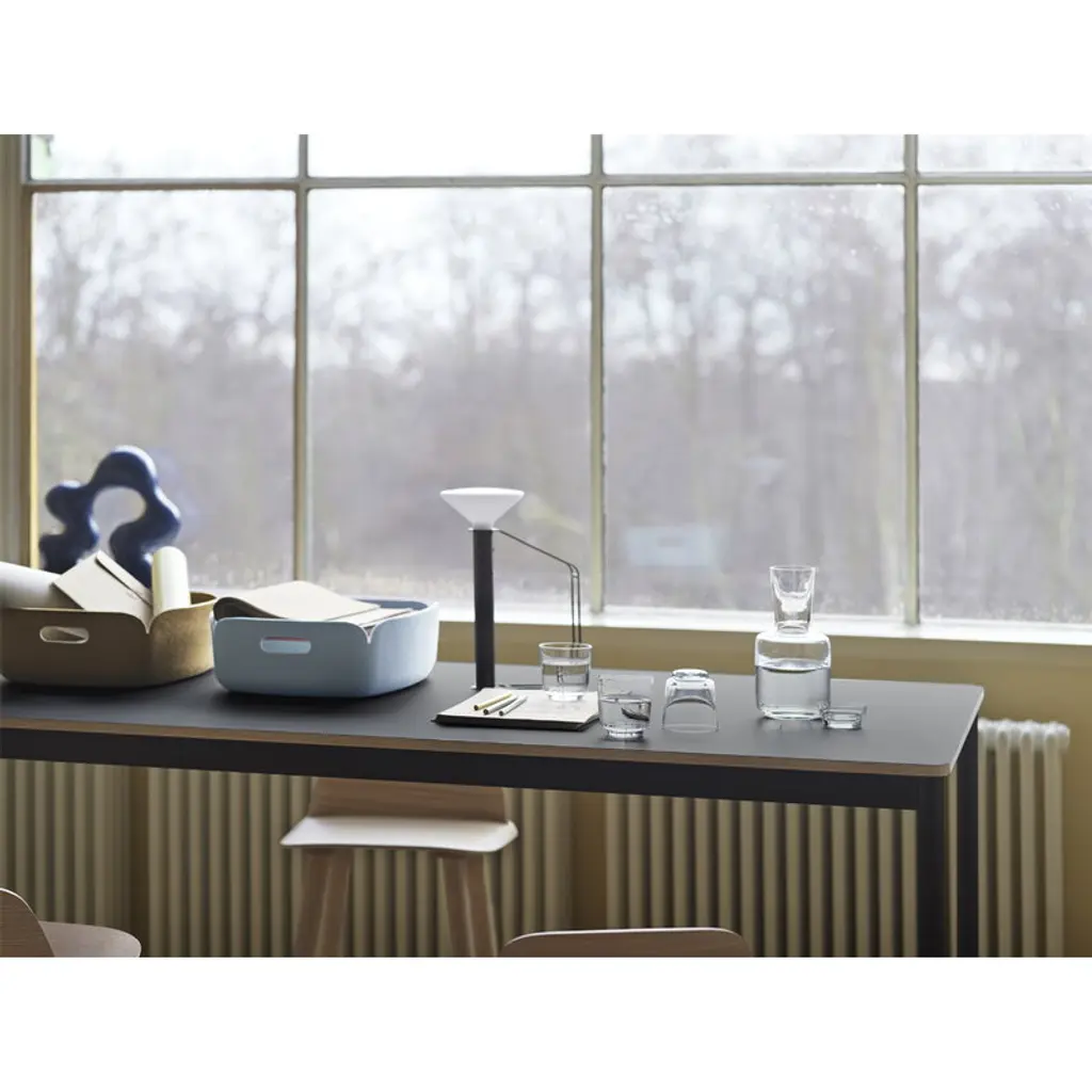 Muuto's Base High is a beautiful, minimalist high table, created by the Finnish designer Mika Tolvanen. His aim was to design a distinctive table that is reduced to its bare minimum but at the same time feels inviting. The lightweight table features a sturdy aluminum frame, which is manufactured by extrusion, and the table top is available with a linoleum or laminate surface, either with ABS or plywood sides. With its clean and simple design, Base makes a versatile piece of furniture, suitable for both homes and offices. Coated with natural linoleum, the Base High table stands at 37.4 in (95 cm) tall, making it a perfect match for bar stools and high chairs – whether at home or in a restaurant setting.