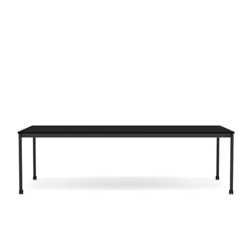 Simple and elegant lines, joined by the functionality of castors. Frame is made from extruded aluminum, painted with an acrylic paint initially developed for outdoor interiors and building facades. Organize and manage cords and wires with our Cable Management. Our Power Outlet can be added to the Base Table. Made-to-order: Laminate with ABS or plywood edge in black or white. Linoleum with plywood edge in black. Nanolaminate finish in either black or white. Bases available in Black or White with matching castors.
