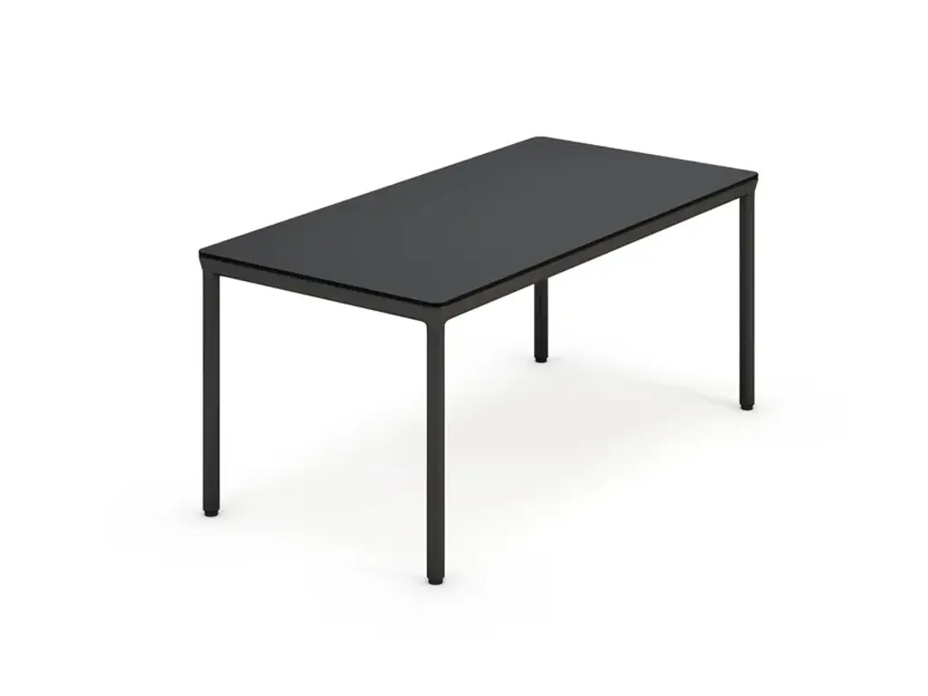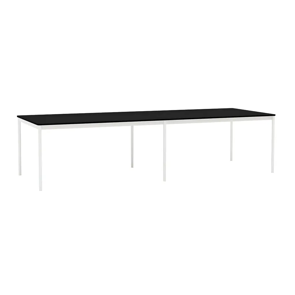 The largest iteration in the Base series expands on Finnish designer Mika Tolvanen's original inspiration, taken from the archetypal table shape. To create a solution with character and yet the versatility to adapt to varied interior styles was as much a priority for Mika as sufficient sturdiness for robust daily duty. The slim and lightweight table belies its appearance with a extruded aluminum frame, its structural strength achieved in an innovative production process. Tabletop in laminate or black lino variations. From Danish maker Muuto, the nearly limitless possibilities for use at home or work.