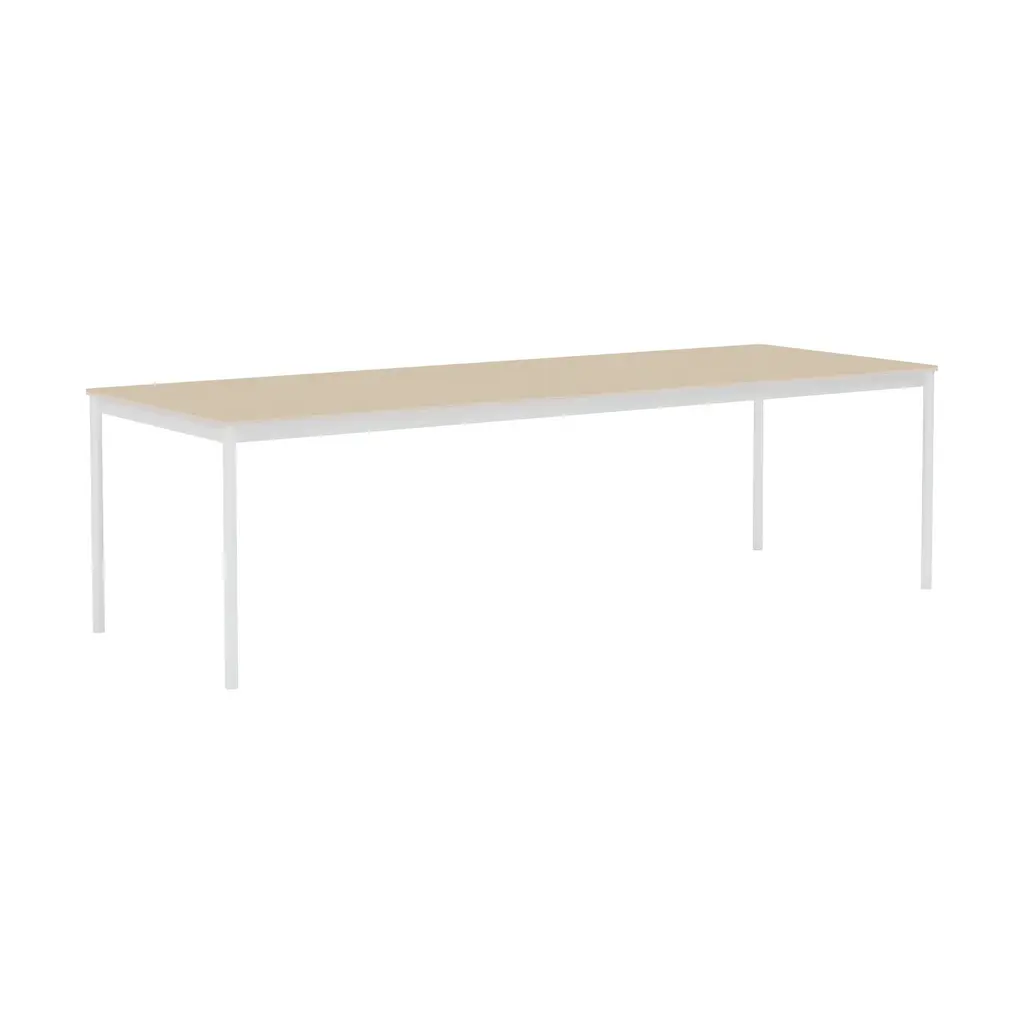 The largest iteration in the Base series expands on Finnish designer Mika Tolvanen's original inspiration, taken from the archetypal table shape. To create a solution with character and yet the versatility to adapt to varied interior styles was as much a priority for Mika as sufficient sturdiness for robust daily duty. The slim and lightweight table belies its appearance with a extruded aluminum frame, its structural strength achieved in an innovative production process. Tabletop in laminate or black lino variations. From Danish maker Muuto, the nearly limitless possibilities for use at home or work.