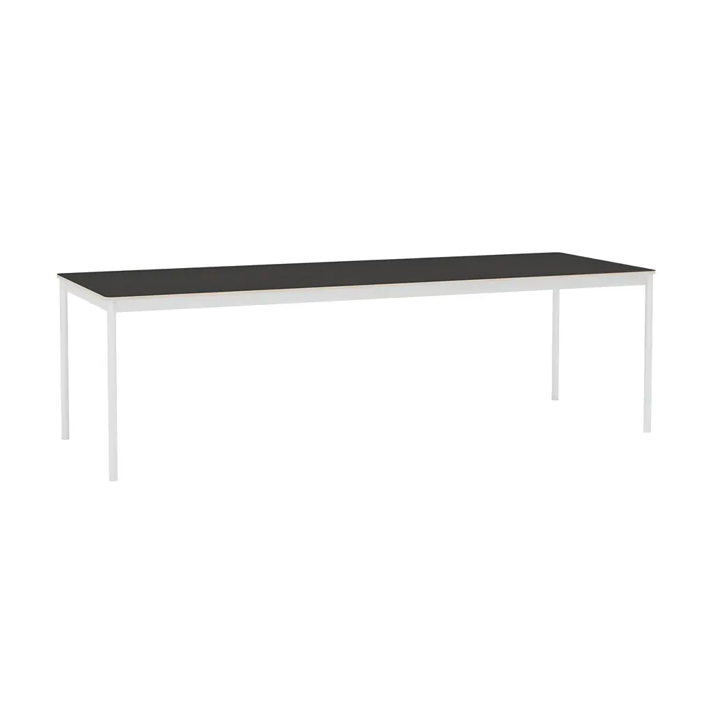 The largest iteration in the Base series expands on Finnish designer Mika Tolvanen's original inspiration, taken from the archetypal table shape. To create a solution with character and yet the versatility to adapt to varied interior styles was as much a priority for Mika as sufficient sturdiness for robust daily duty. The slim and lightweight table belies its appearance with a extruded aluminum frame, its structural strength achieved in an innovative production process. Tabletop in laminate or black lino variations. From Danish maker Muuto, the nearly limitless possibilities for use at home or work.