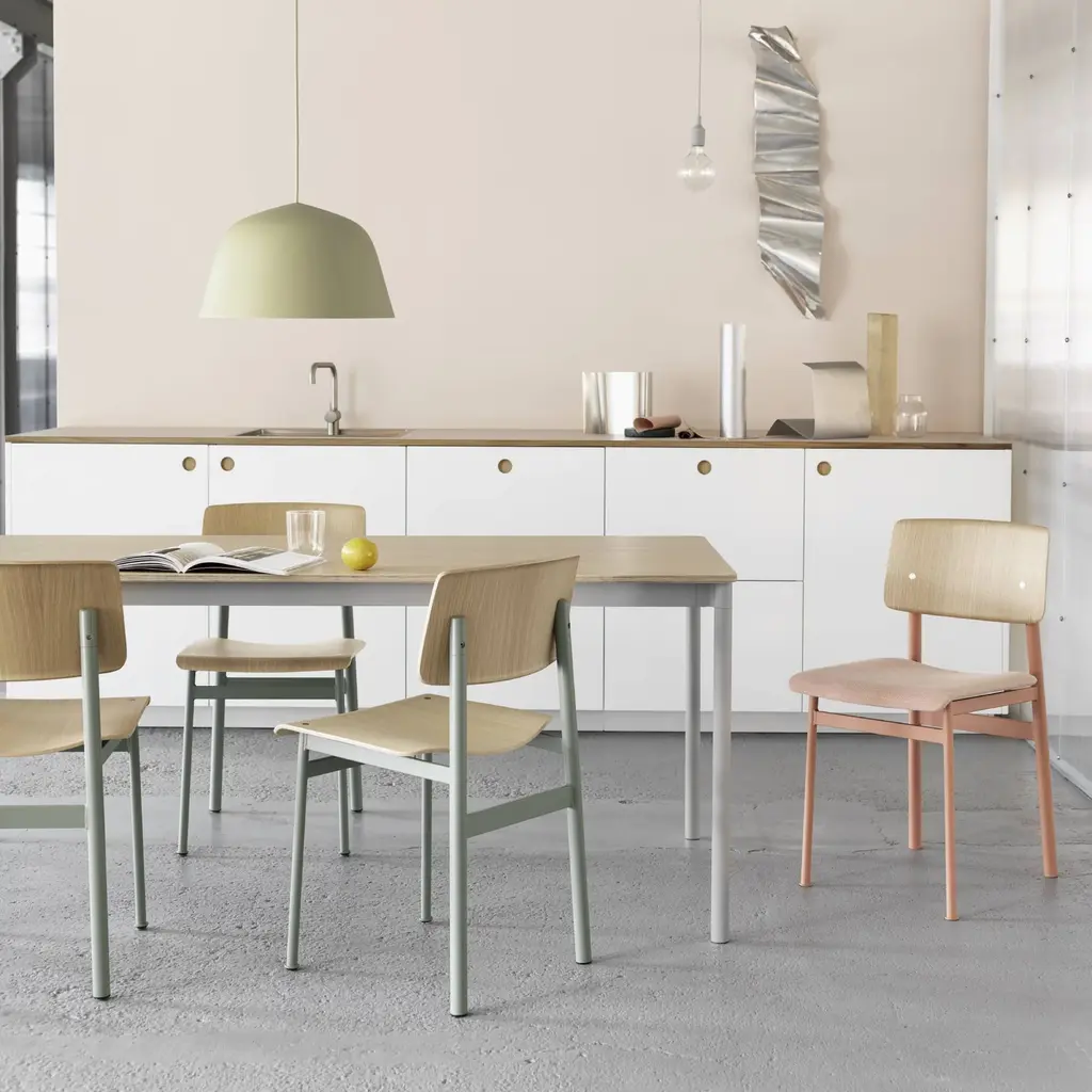 With his Base collection, Finnish designer Mika Tolvanen sought a table with character and yet the adaptability to meld with all manner of interiors. Mika's deceptively slim and lightweight series for Danish brand Muuto nonetheless stands up to robust daily use with its innovative extruded-aluminum frame that increases the table's sturdiness. In an acrylic painted finish with tabletop in laminate or black lino variations, the midsize version proves its versatility in nearly any setting, from commercial to residential.