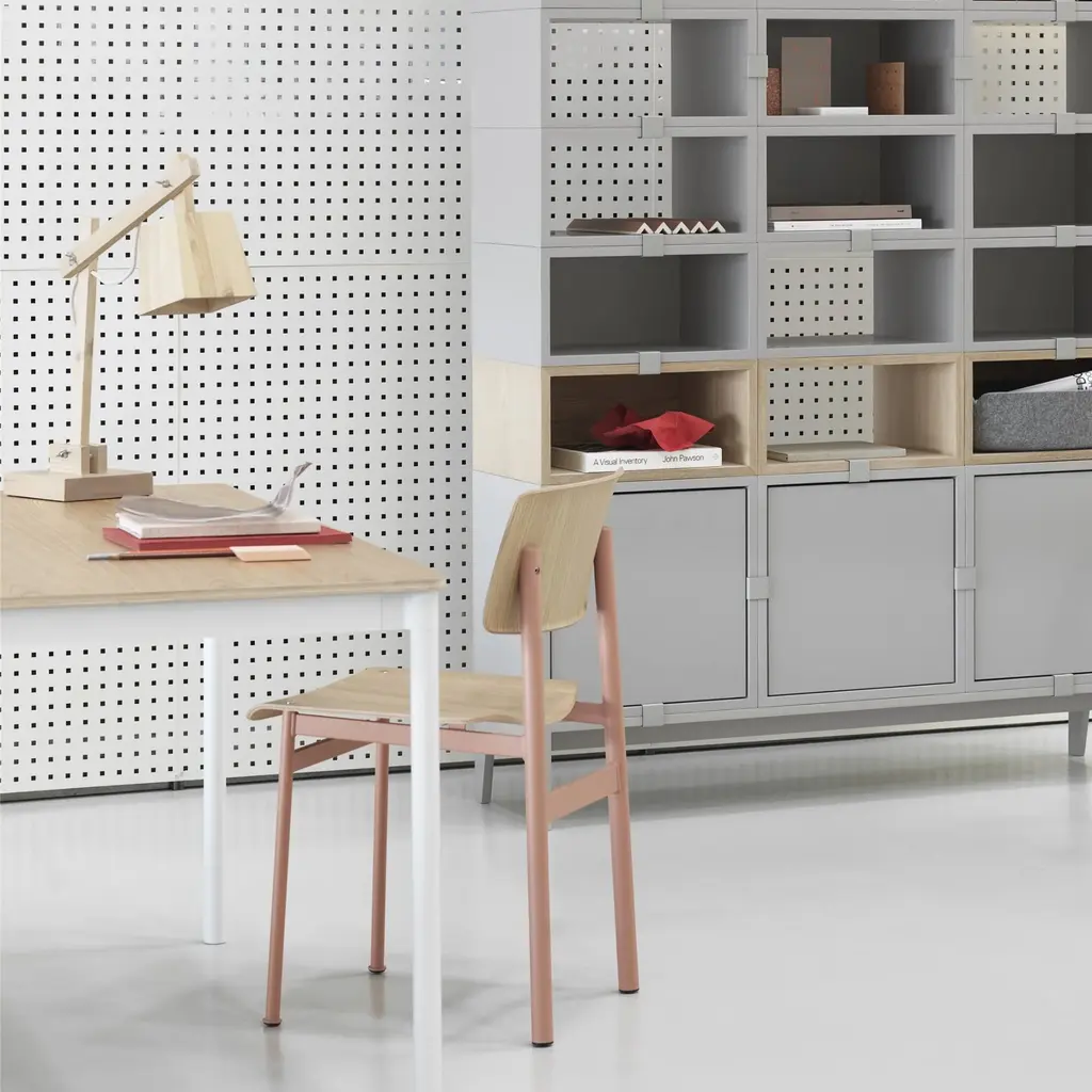 With his Base collection, Finnish designer Mika Tolvanen sought a table with character and yet the adaptability to meld with all manner of interiors. Mika's deceptively slim and lightweight series for Danish brand Muuto nonetheless stands up to robust daily use with its innovative extruded-aluminum frame that increases the table's sturdiness. In an acrylic painted finish with tabletop in laminate or black lino variations, the midsize version proves its versatility in nearly any setting, from commercial to residential.