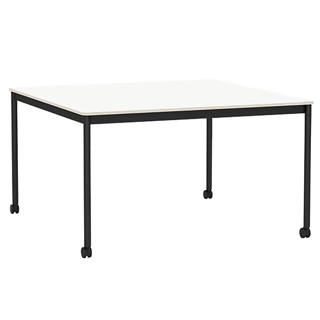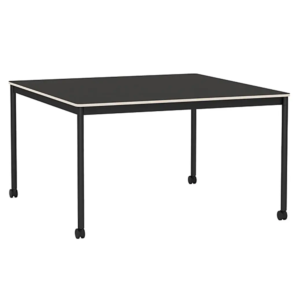Finnish designer Mika Tolvanen's cleverly straightforward table suits any space from residential to workaday and here it gets a movable square version on rolling castors. Notably slim and lightweight, this Base model comes in 3 sizes and is constructed with a sturdy extruded aluminum frame finished in painted acrylic. The slightly rounded tabletop is surfaced in laminate or black lino. and features a visible veneer edge for a woody Scandinavian accent.